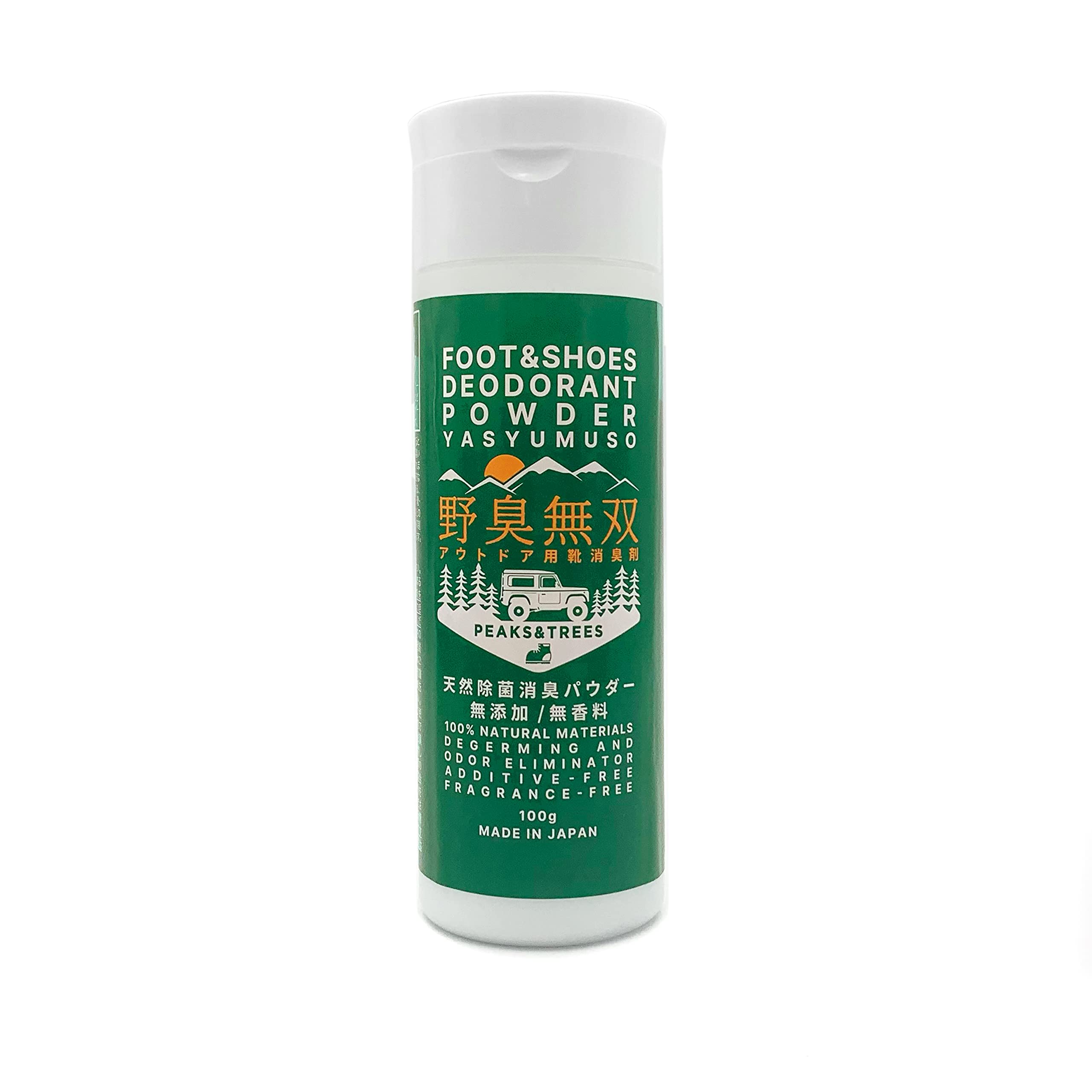 PEAKS&TREES 消臭パウダー アウトドア シューズ 消臭剤 スニーカー 靴 野臭無双 除菌消臭 無添加 無香料 天然素材 100% デオドラント 【日本製】 【 靴 靴下 足の臭い対策! 】【トレッキングシューズなどの消臭対策!】(100g 単品)