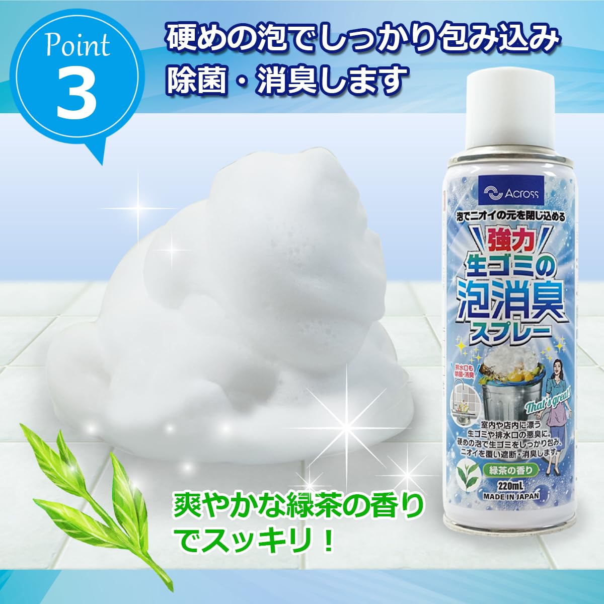 Across 消臭泡スプレー 生ゴミ用 220ml 除菌 遮断 キッチン ごみ箱 排水口 緑茶の香り 日本製 (2本)
