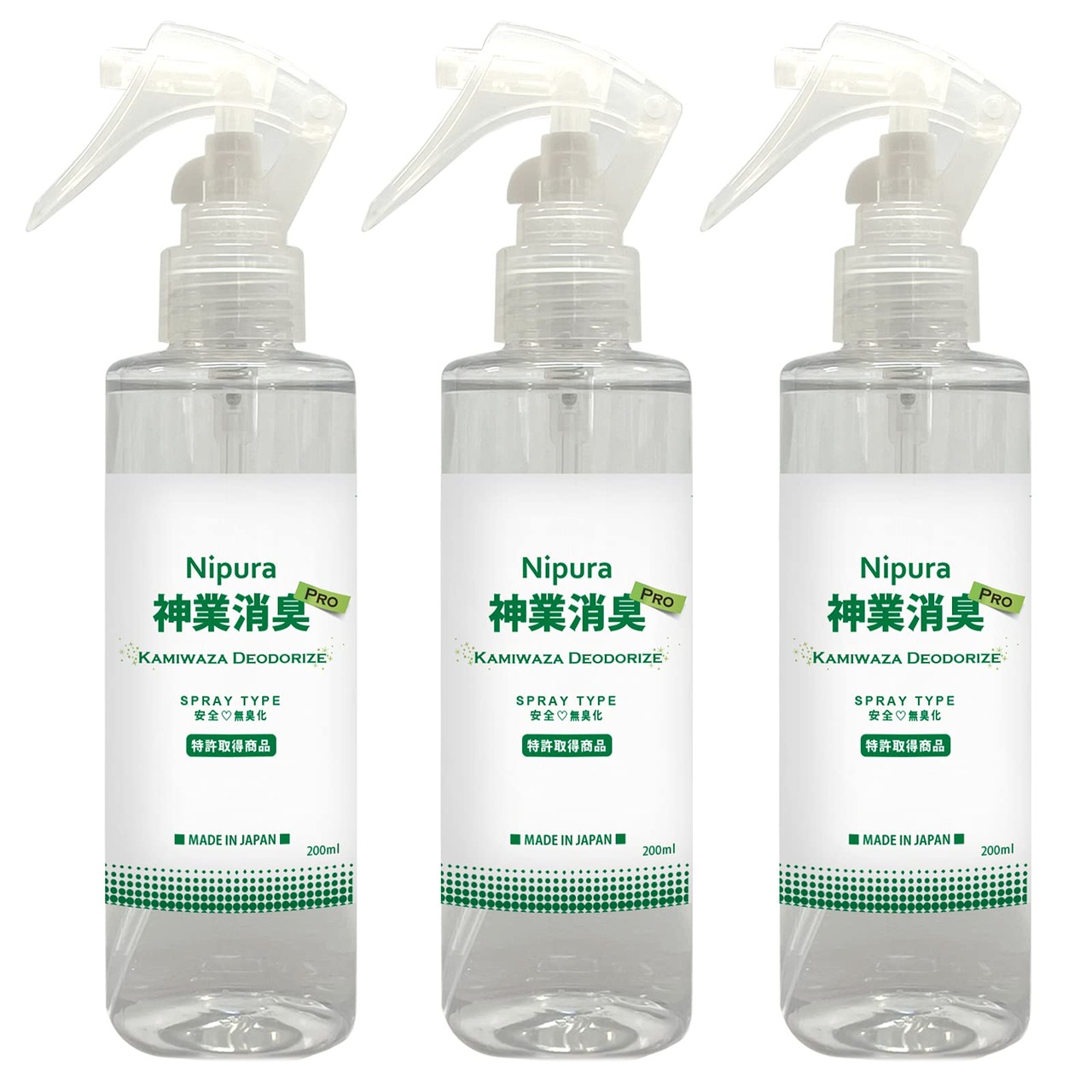ニプラ 神業消臭プロ スプレー 200ml たばこ臭 ペンキなど化学物質の揮発臭 ペットやし尿などアンモニア臭特化の消臭剤 (3本)