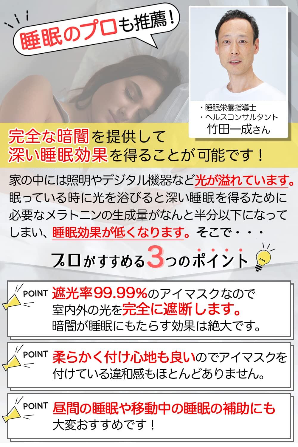 特徴 3D立体型,軽量,遮光性,通気性,洗濯可能