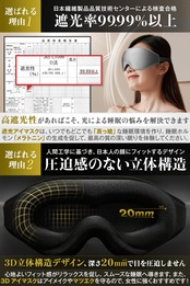 ?【3D立体・遮光アイマスクの決定版】2021年9月発売の新商品。1年間の開発を経て、「最強遮光」×「圧迫感なしの立体構造」×「光漏れゼロのフィット感」×「安全で柔らかい素材」で、夏・冬も快適な深い眠りが試せる3Dアイマスクが誕生しました。