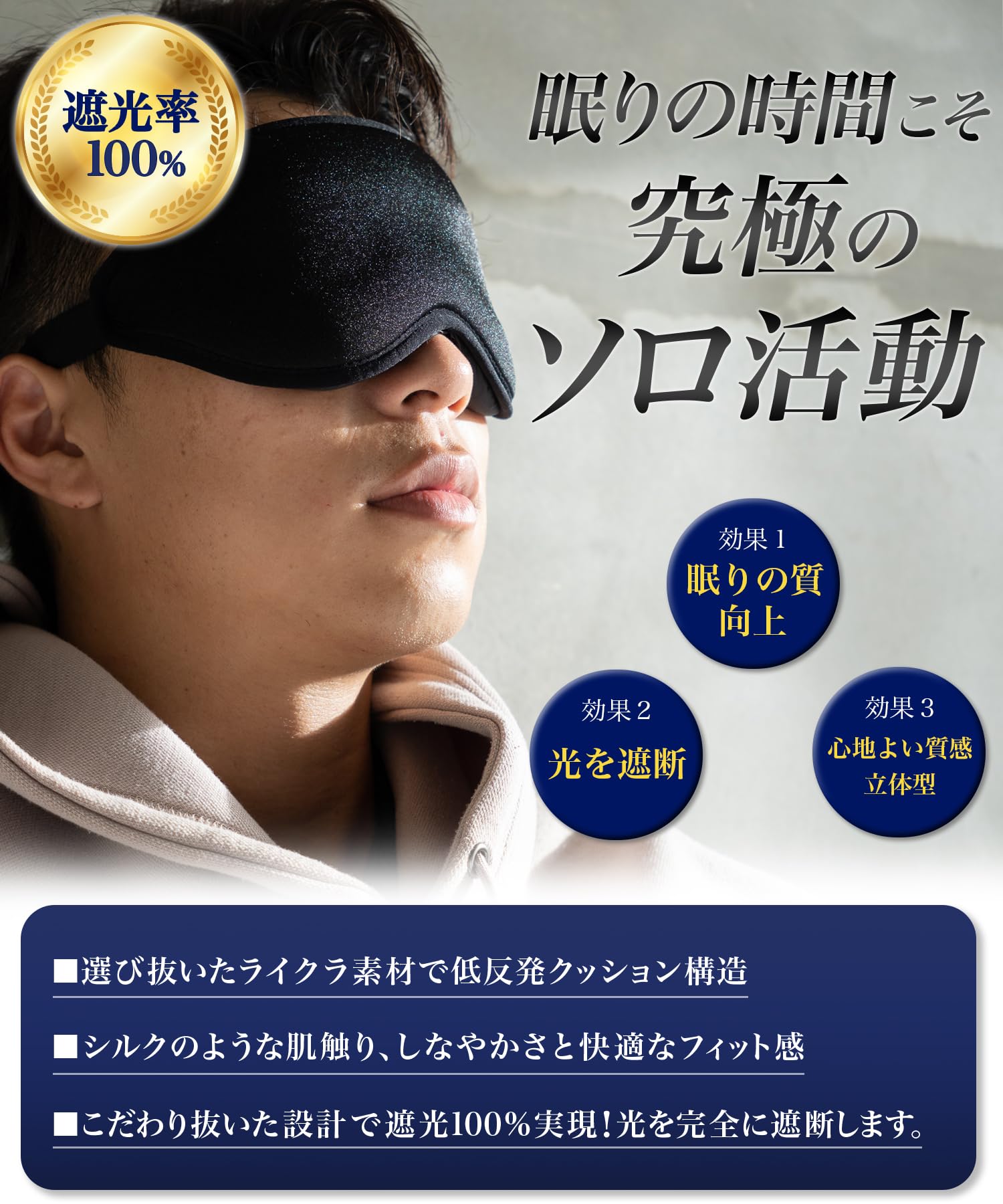 【最先端フィットテクノロジーを搭載】快眠グッズ 3D構造とノーズフィッターで、?を圧迫することなく隙間をゼロに。?い遮光性と付け?地の良さを実現しています。