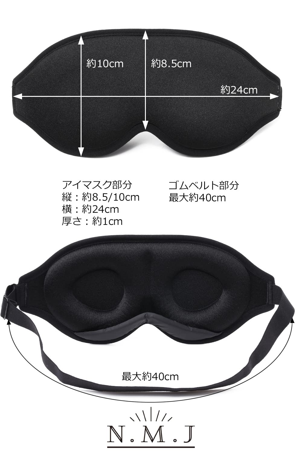 [NMJ] アイマスク [睡眠コンサルタント監修] 低反発メモリーコットン素材で 快適睡眠 フリーサイズ(サイズ調整可能) (3D立体フォルム)