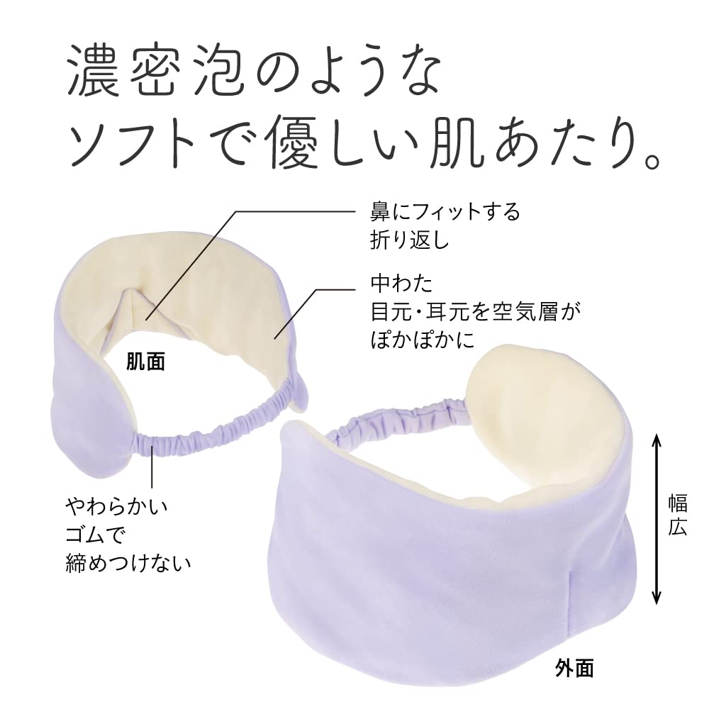 濃密泡のようなソフトで優しい肌あたり。耳まで覆うアイマスクで就寝中の目元・耳元の温め・乾燥対策に