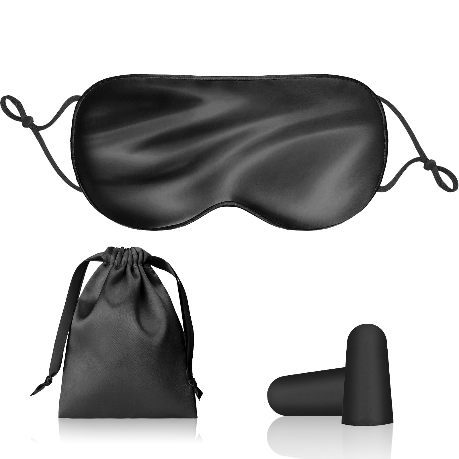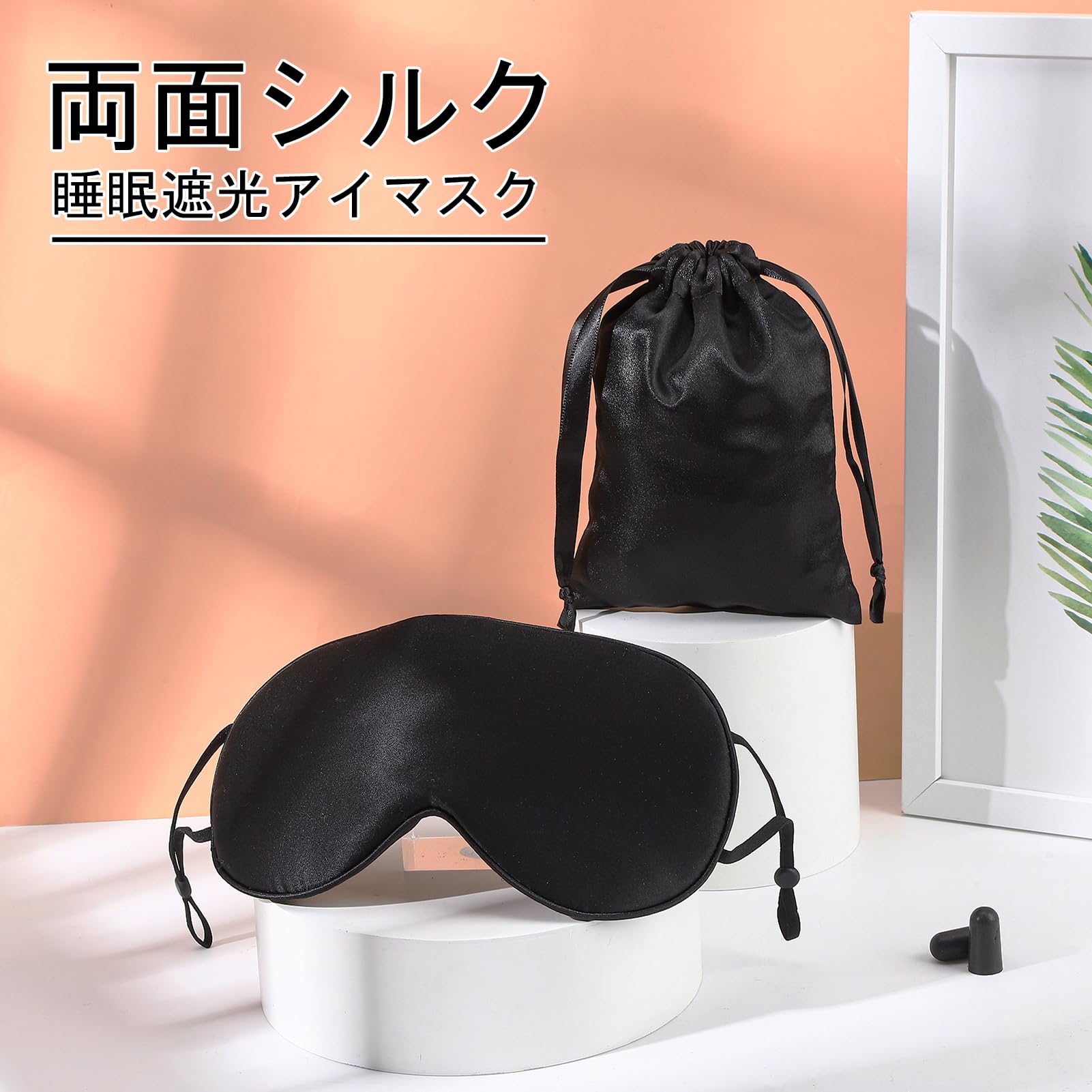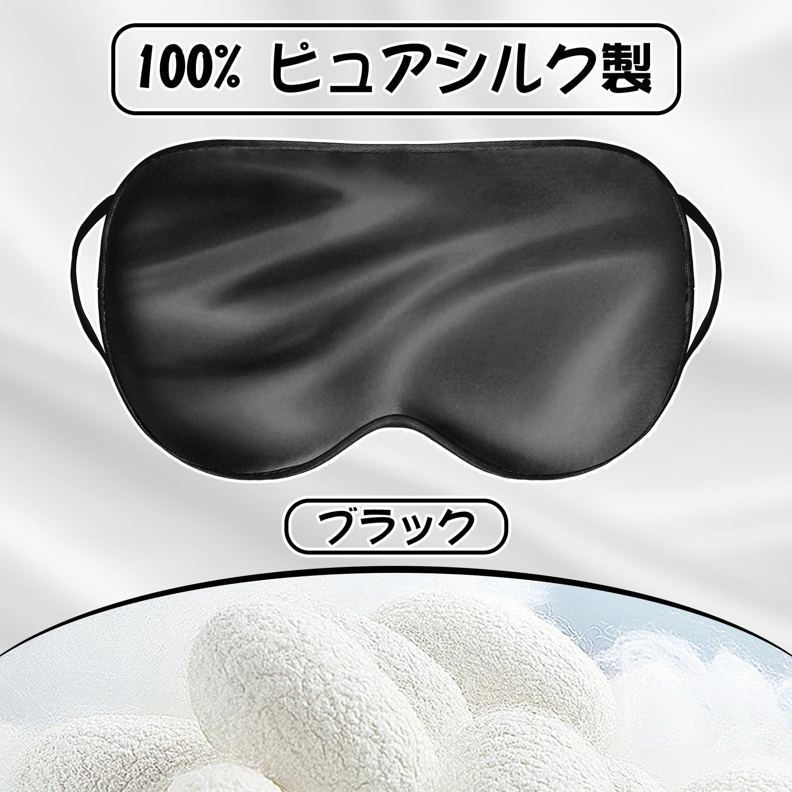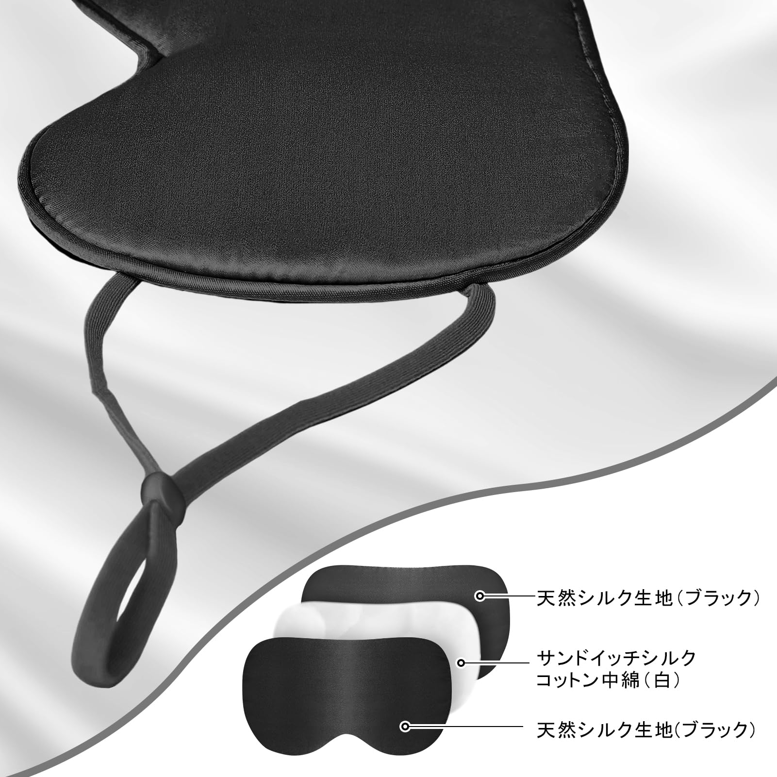 Hitchlike アイマスク 睡眠用 シルクアイマスク 耳掛け 天然シルク製 夏用 通気性 圧迫感なし 快眠グッズ 目隠し 超軽量 洗濯可能 自由調整可能 男女兼用 収納袋 耳栓付属(ブラック)