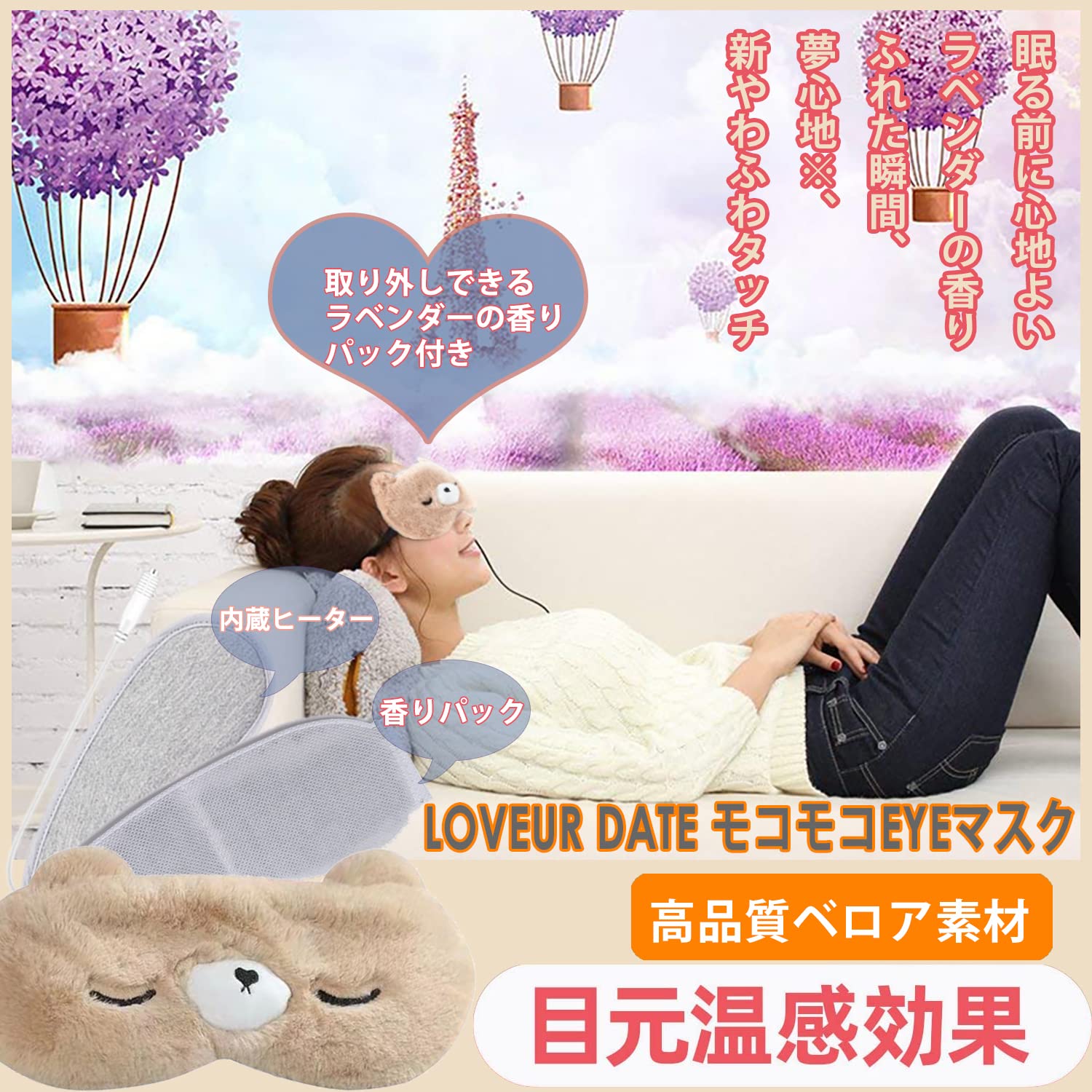 Loveur Date モコモコ ホットアイマスク USB 電熱式 かわいい リラックス 圧迫感なし 遮光 温度調節 自動電源オフ 安全保護 睡眠/昼休み/旅行/出張/ギフト/プレゼント アイマスクホット ポーチ付き (ブラウン)