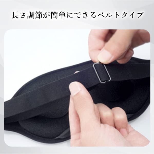 ・目を圧迫せず、快適な睡眠をサポートします。 ・鼻まわりからの光を遮断します。 ・長時間の装着でも快適に使用できるように通気性に優れ、肌触りが柔らかくなっています。 ・長さ調節が簡単にできるベルトタイプです。 ・旅行や休憩の時間にも最適です。 【商品仕様】 カラー ブラック