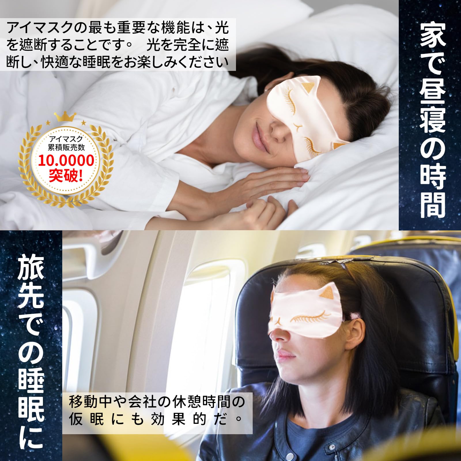 アイマスク 猫柄 睡眠用 通気性 圧迫感なし 遮光 昼休み 快眠グッズ 目隠し 超軽量 母の日 ギフト 洗濯可能 自由調整可能 男女兼用 (ピンク)