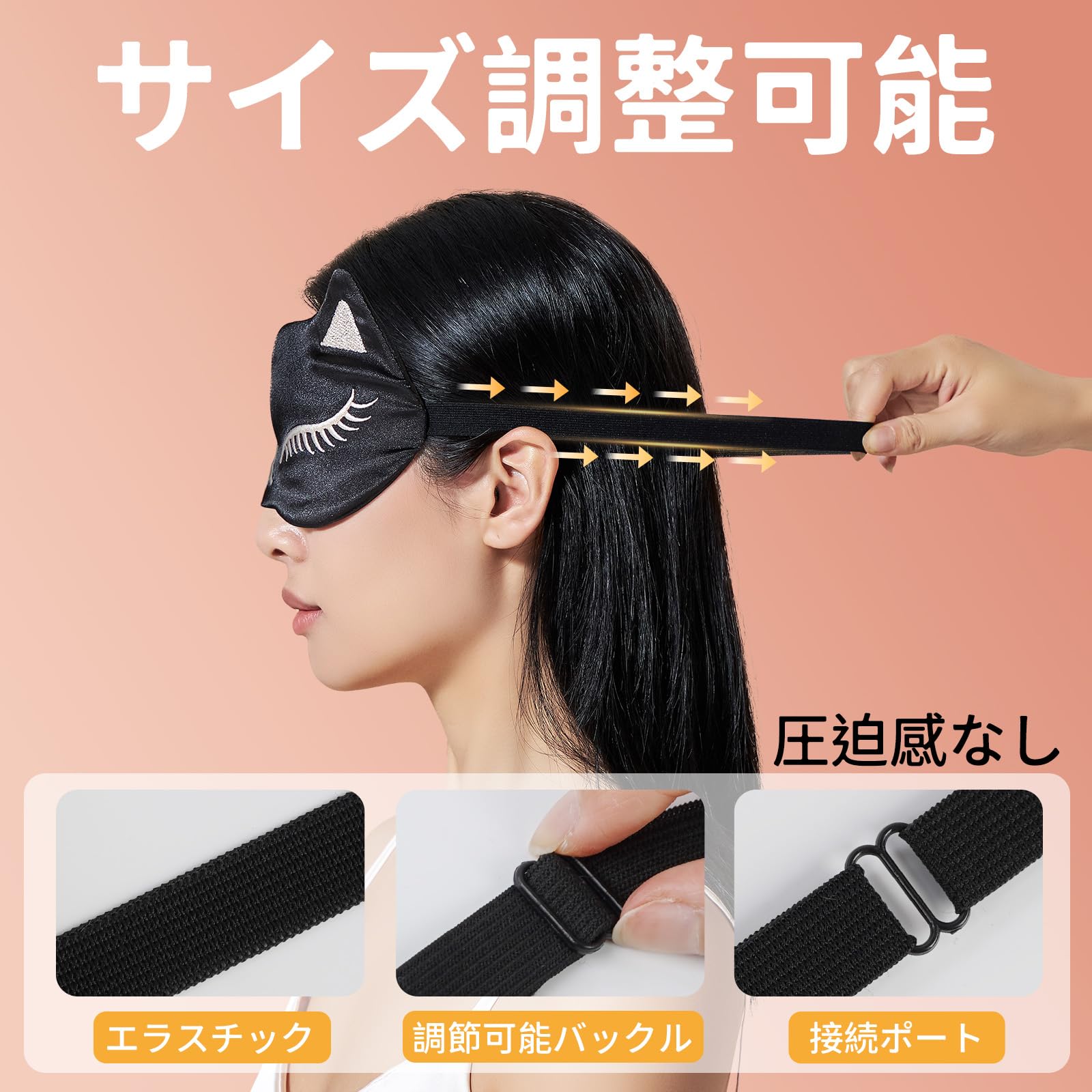 【調節可能ゴムひも】耳掛けタイプと異なり、耳に負担をかけないアイマスク睡眠。ボタンを調整することで、アイマスクのサイズを調整することができます。また、調整ベルトは優れた弾性を有する