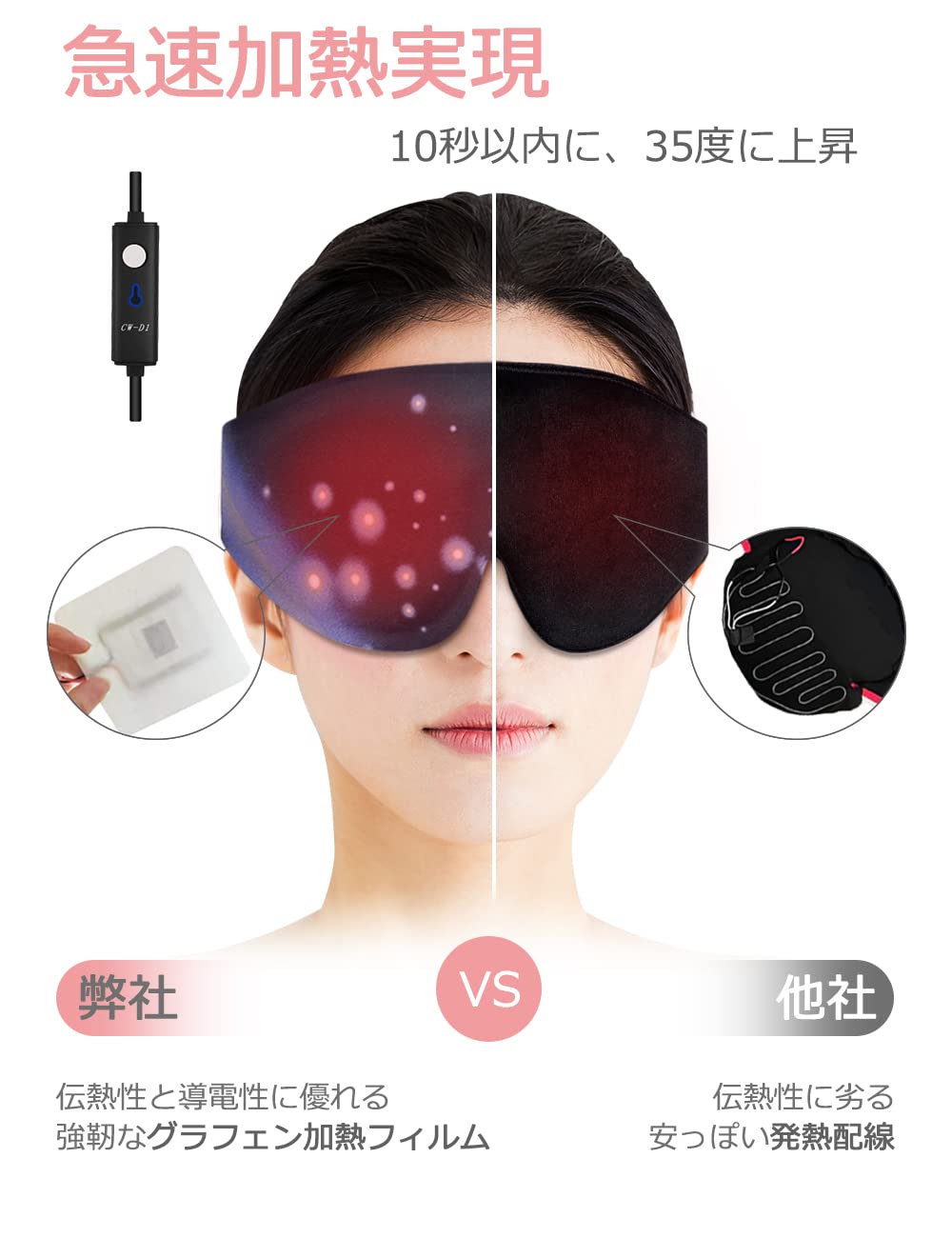 GRAPHENE TIMES 蒸気 ホットアイマスク 安眠 遮光 圧迫感なし 目元エステ usb加熱 3段階温度調節 1時間オートオフタイマー 3D立体構造 睡眠アイマスク 繰り返し使用可能 睡眠改善 旅行 出張 アイマスク プレゼント ブラック