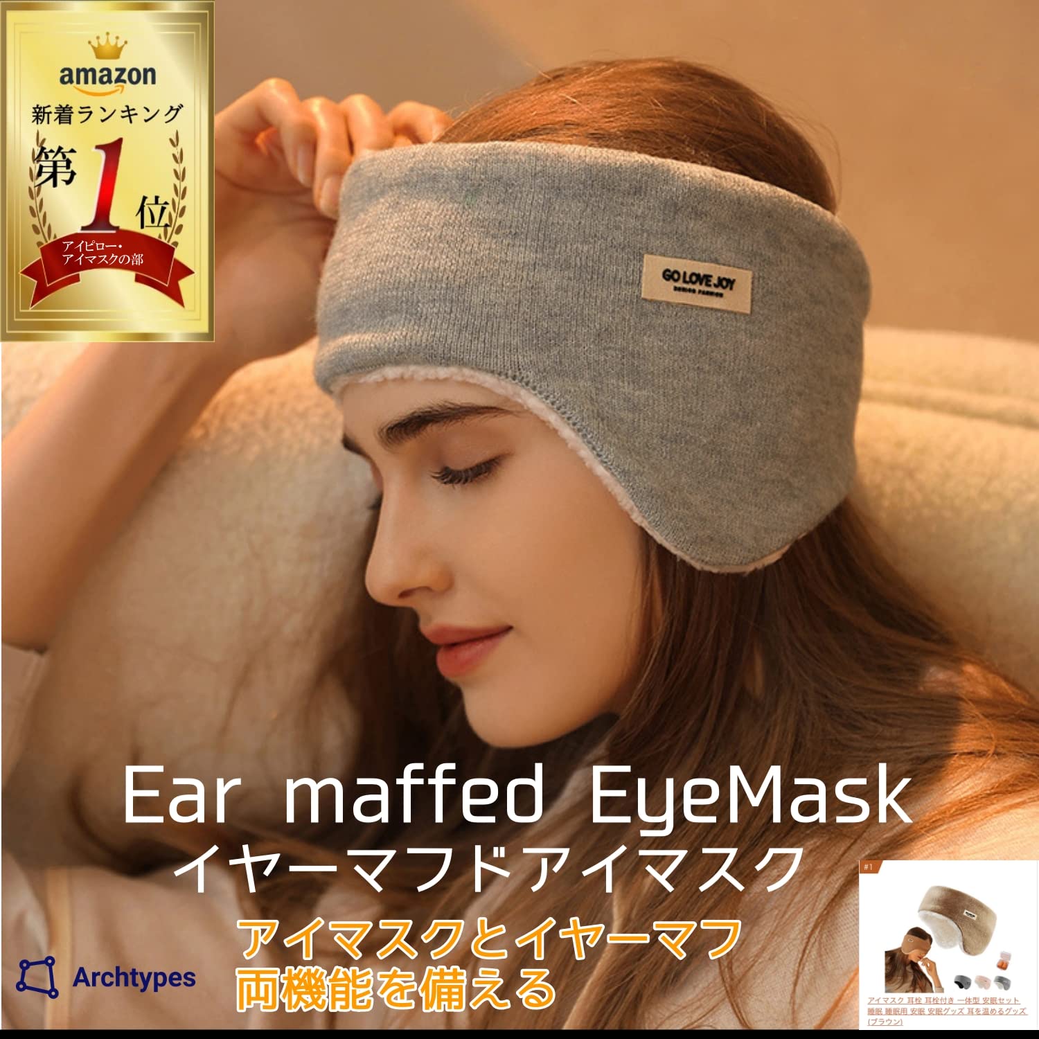 [Archtypes] アイマスク イヤーマフ 睡眠用 耳栓 安眠グッズ 睡眠グッズ イヤホン 防音 聴覚過敏 遮光 耳を温めるグッズ (グレー(薄手))