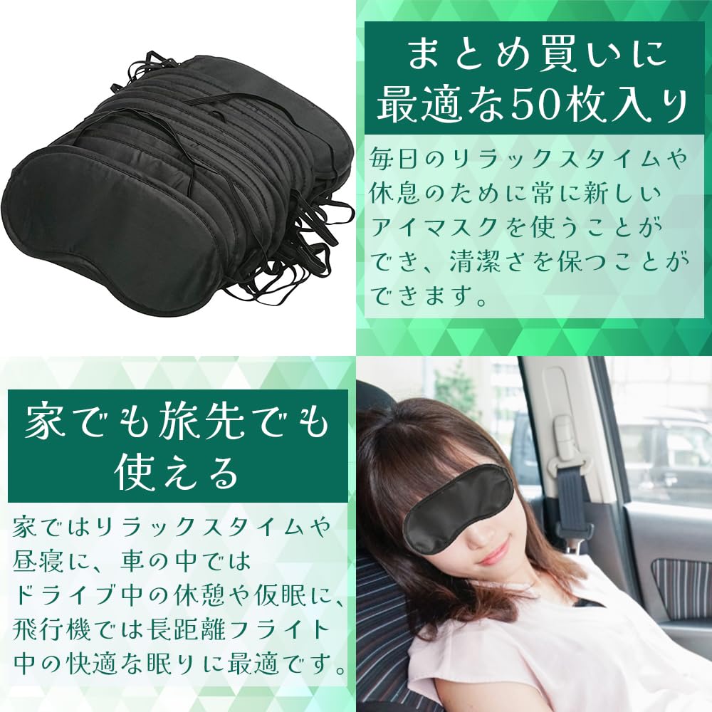 ideamall アイマスク アイカバ— 50個セット 遮光 通気性 軽量 圧迫感なし 洗える 旅行 出張 男女兼用 (一括包装)