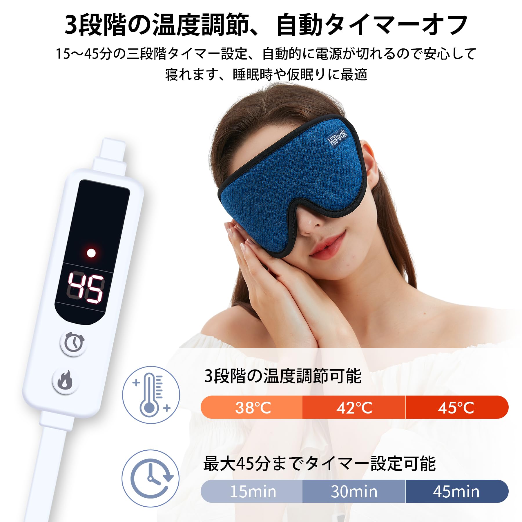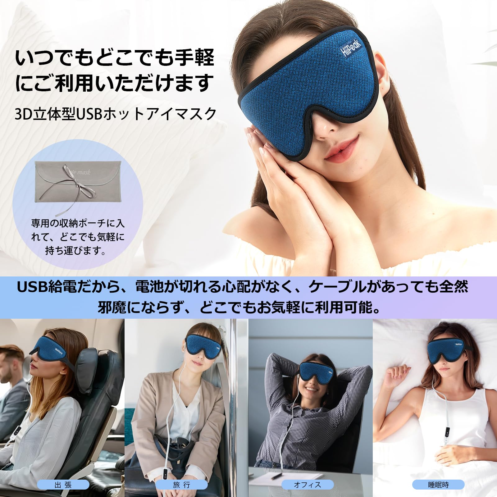 HiiPeak ホットアイマスク USB TypeC 電熱式 アイマスク ホット 睡眠用 かわいい 安眠目元美顔器 【3D立体型&圧迫感なし】 リラックス タイマー設定 温度調節 遮光 軽量 耳栓 繰り返し使用可能 旅行 快眠グッズ 父の日 恋人 母 誕生日プレゼント ギフトケース包装 収納袋付き (ブルー)