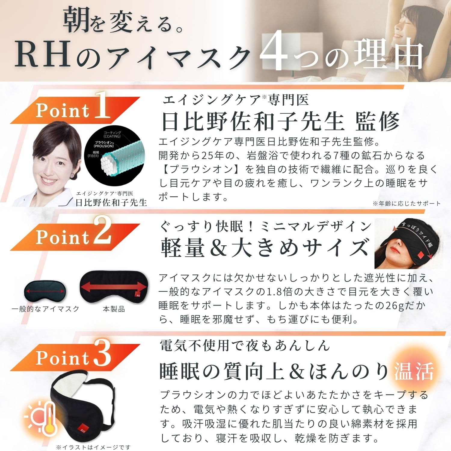 【エイジングケア専門医師×生理学博士が開発】 RH アイマスク 天然鉱石 プラウシオン 睡眠用 安眠 快眠 旅行 トラベル 遮光性◎ 通気性◎ ネイビー 母の日ギフト 母の日