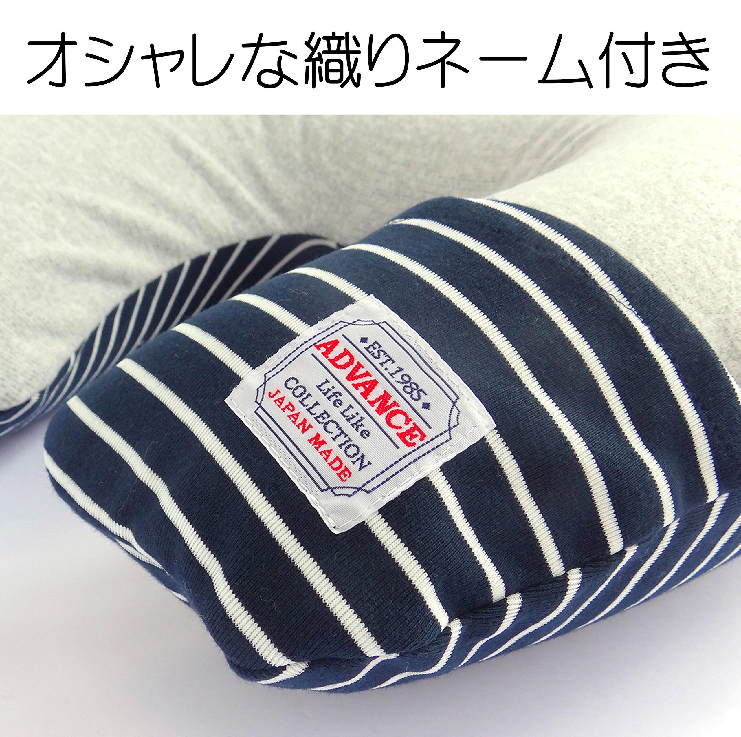 ADVANCE 旅行用 エアー ネックピロー 柔らか 綿 ニット&ボーダー 日本製 ホワイト wh