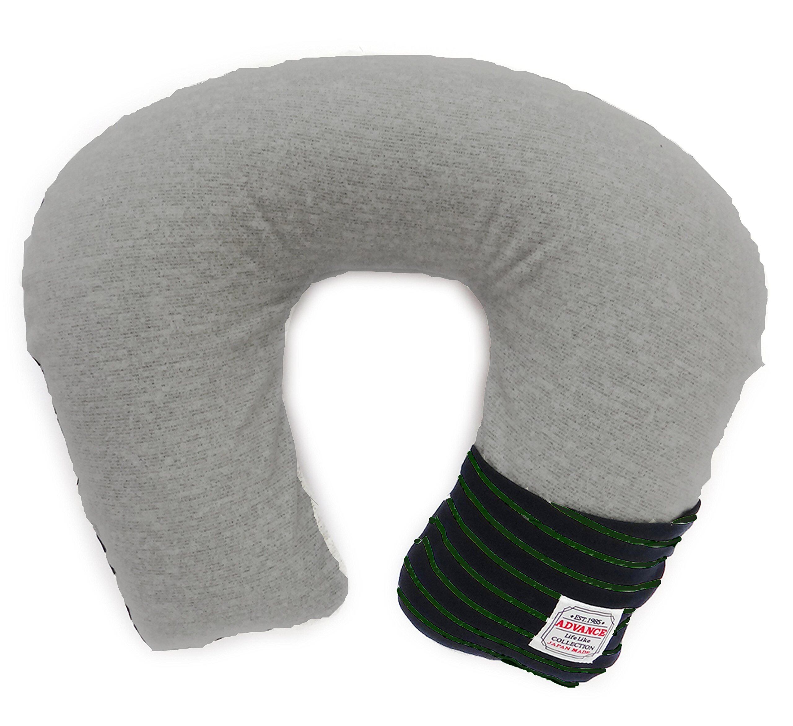 ADVANCE 旅行用 エアー ネックピロー 柔らか 綿 ニット&ボーダー 日本製 ネイビー/グリーン nvgr