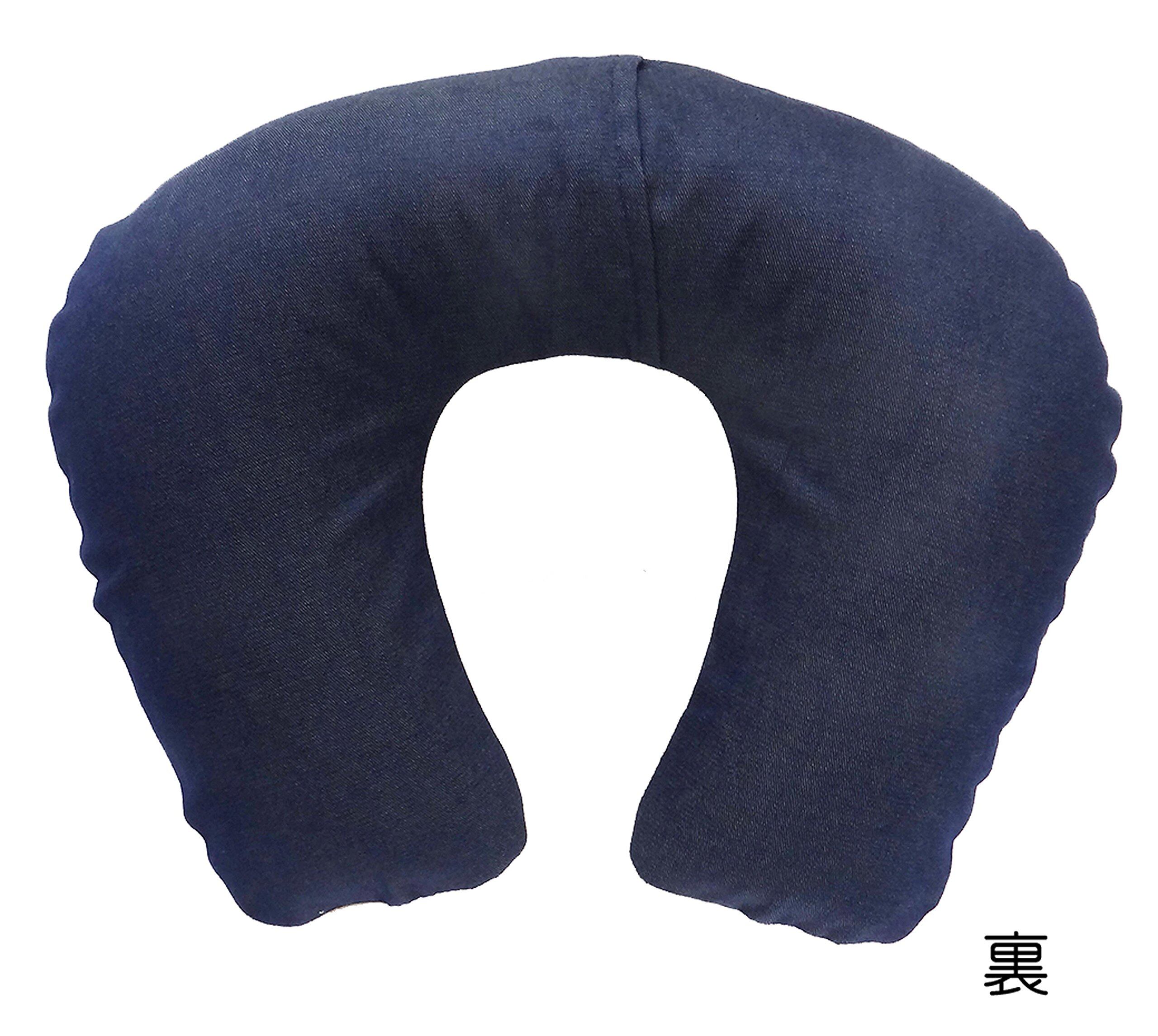 お肌にやさしいスウェット地、日本製の空気で膨らむ携帯用枕。