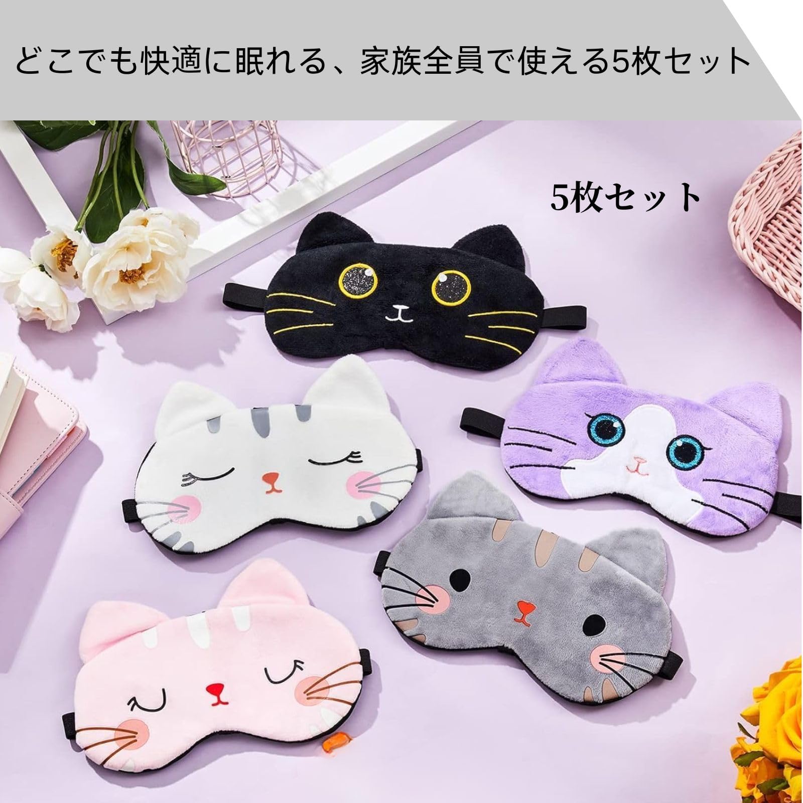 Life2キク アイマスク アイカバー アイピロー 安眠マスク 調整可能なストラップ付き 子供 大人兼用 5枚セット