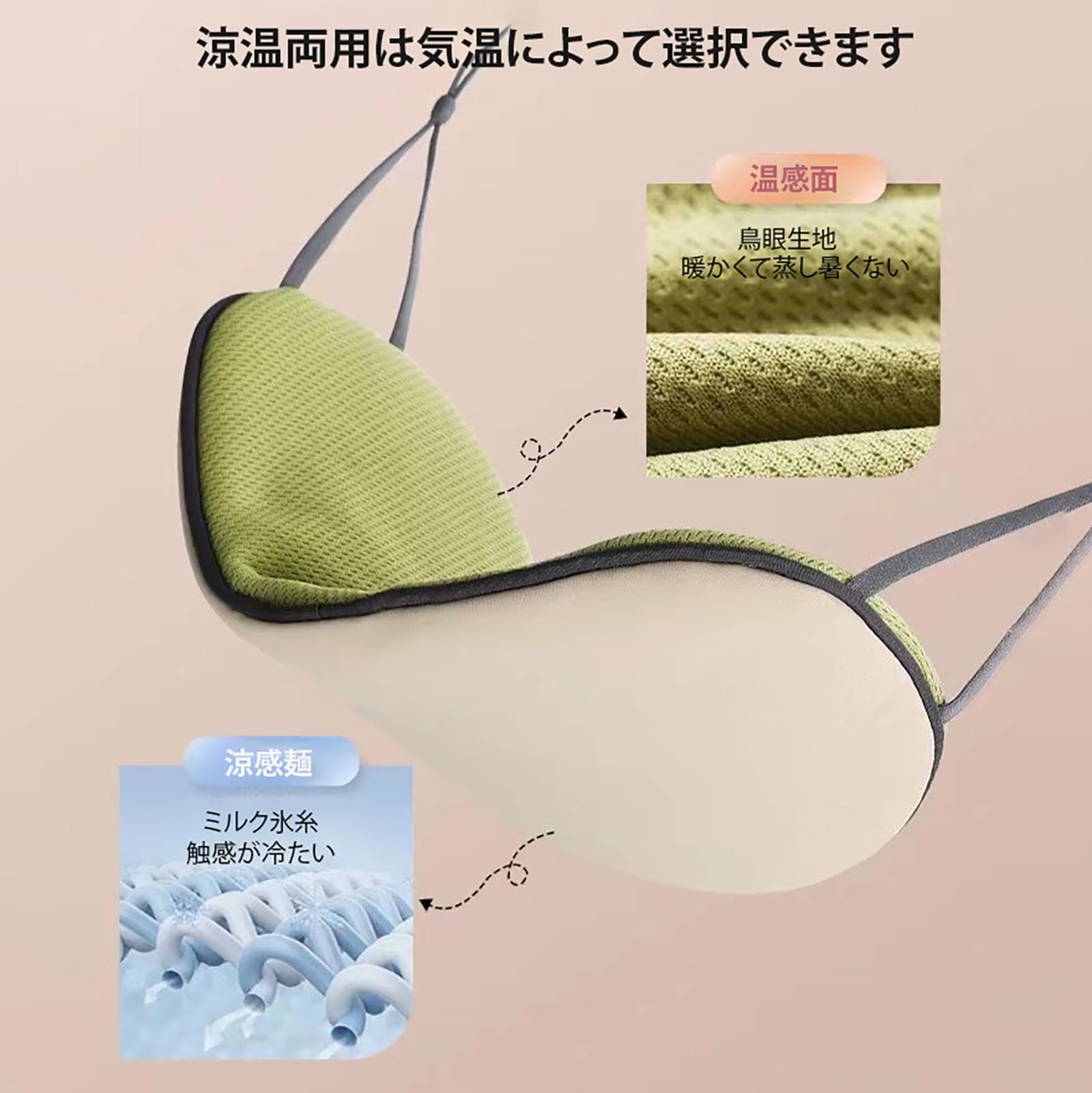 ?【冷温両用】 2つの素材で目の疲れを癒やす冷温両用アイマスク。シルク風面はひんやりで冷感、コットン面はふんわり温感作用があります,快適な装着感シルク面は瞬間温度をす。