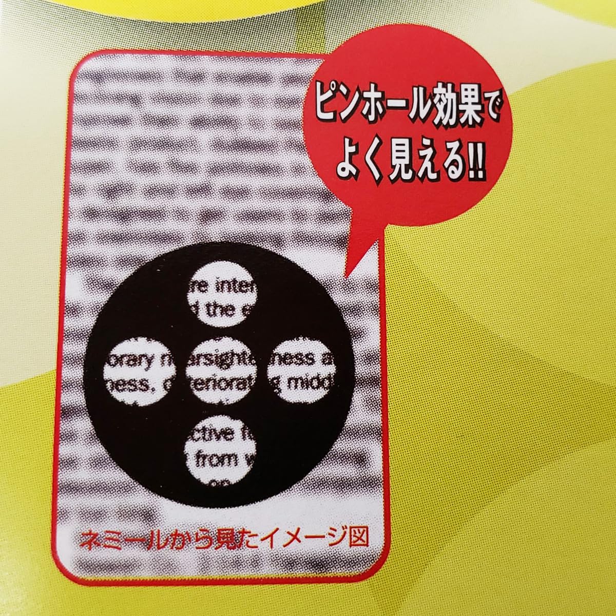 ピンホール効果で不思議と焦点が合います。アイマスクの穴から覗くことで眼筋を使わずに焦点が合います。