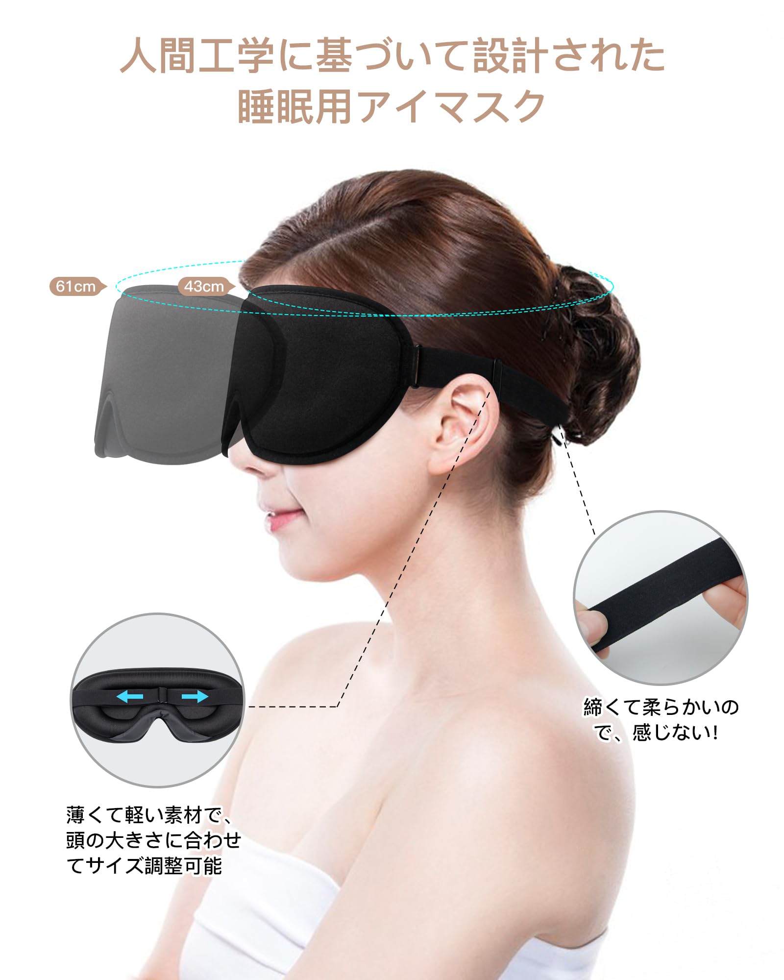 【特価商品】MDDQNM アイマスク 睡眠用 休憩用 眼罩 遮光 通気性 圧迫感なし 立体 3D 旅行用 目隠し 柔らかい シルク質感 低反発素材 サイズ調整可能 旅行/出張/昼寝に最適 快眠 グッズ 男女兼用 遮光デザインアイマスク(ブラック) | Lumisfera