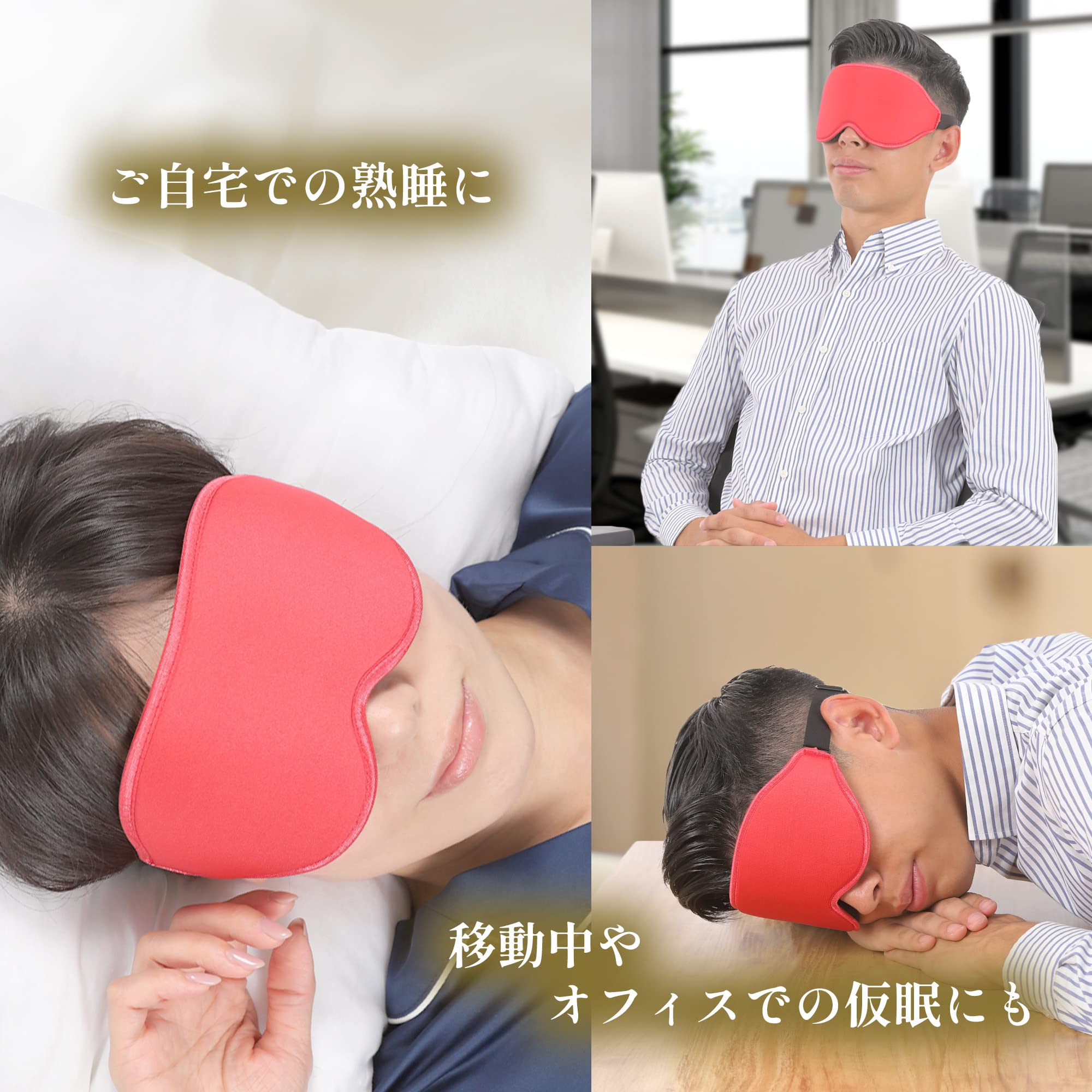 アイマスク 睡眠用 やわらか低反発 【遮光性99.99%】 ベルト調整可能 通気性 昼寝 出張 飛行機 新幹線 旅行 アイピロー フリーサイズ (レッド)