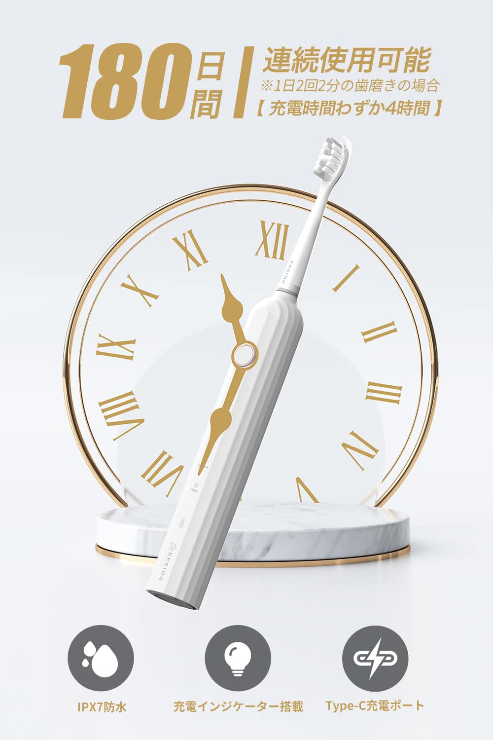 【日本では560人に一人がエペイオスのOkare!を選んでいます。】Epeios OKare!ET003「家電批評」電動歯ブラシランキング第一位を取得!(2024年9月3日発表された10月号)2022-2024連続ベストバイ獲得 殿堂入り!【ギリシャにインスパイアされたデザイン・8色選択可能】電動歯ブラシのフォルムは、古典建築の代表の1つであるギリシャの宮殿の柱にインスパイアされ設計されており、八つのカラーから選べます。