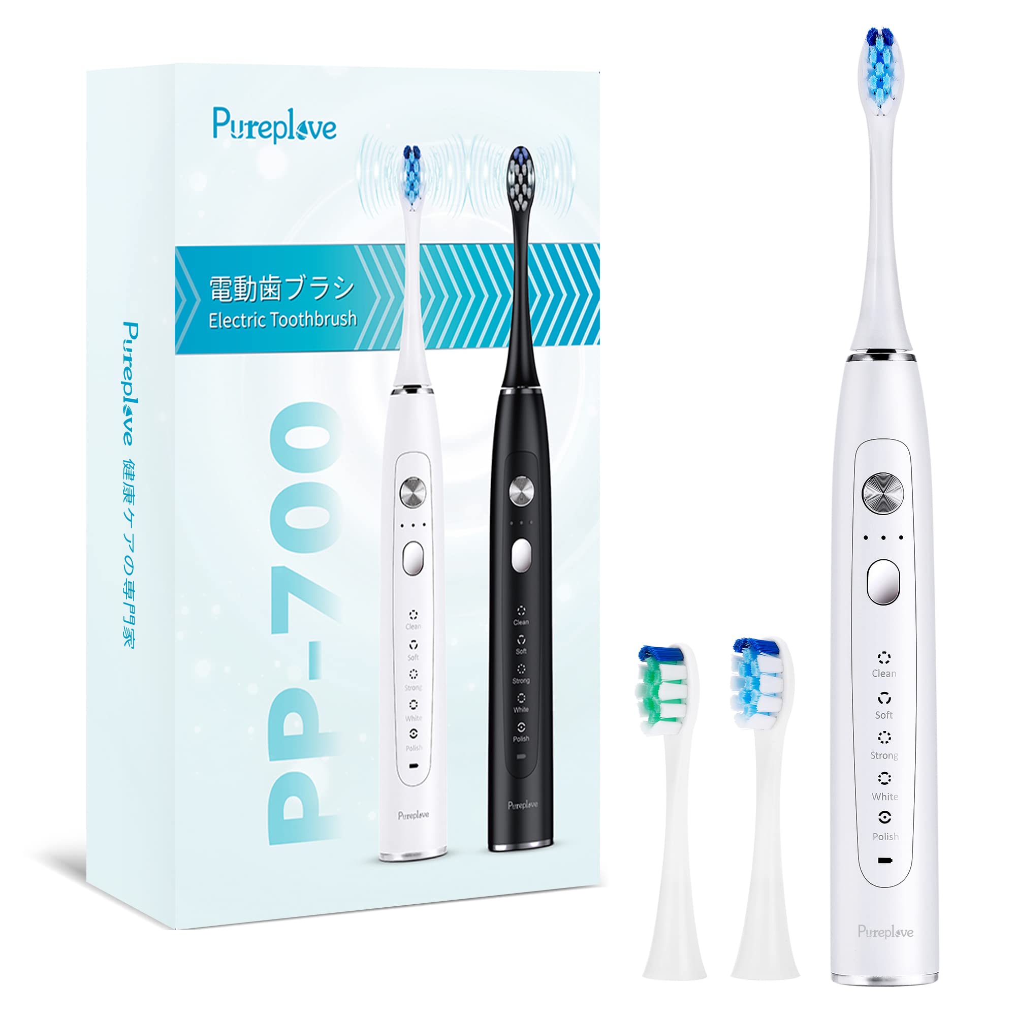 【在庫処分】Pureplove 電動歯ブラシ 音波歯ブラシ 静音 42000回転/分 歯ブラシ磨き ワイヤレス充電 IPX7防水 携帯用 除菌器 5つモード タイマー 超高速振動 低ノイズ 歯磨き メモリー機能 口臭予防 PP-700A-WHA | Lumisfera