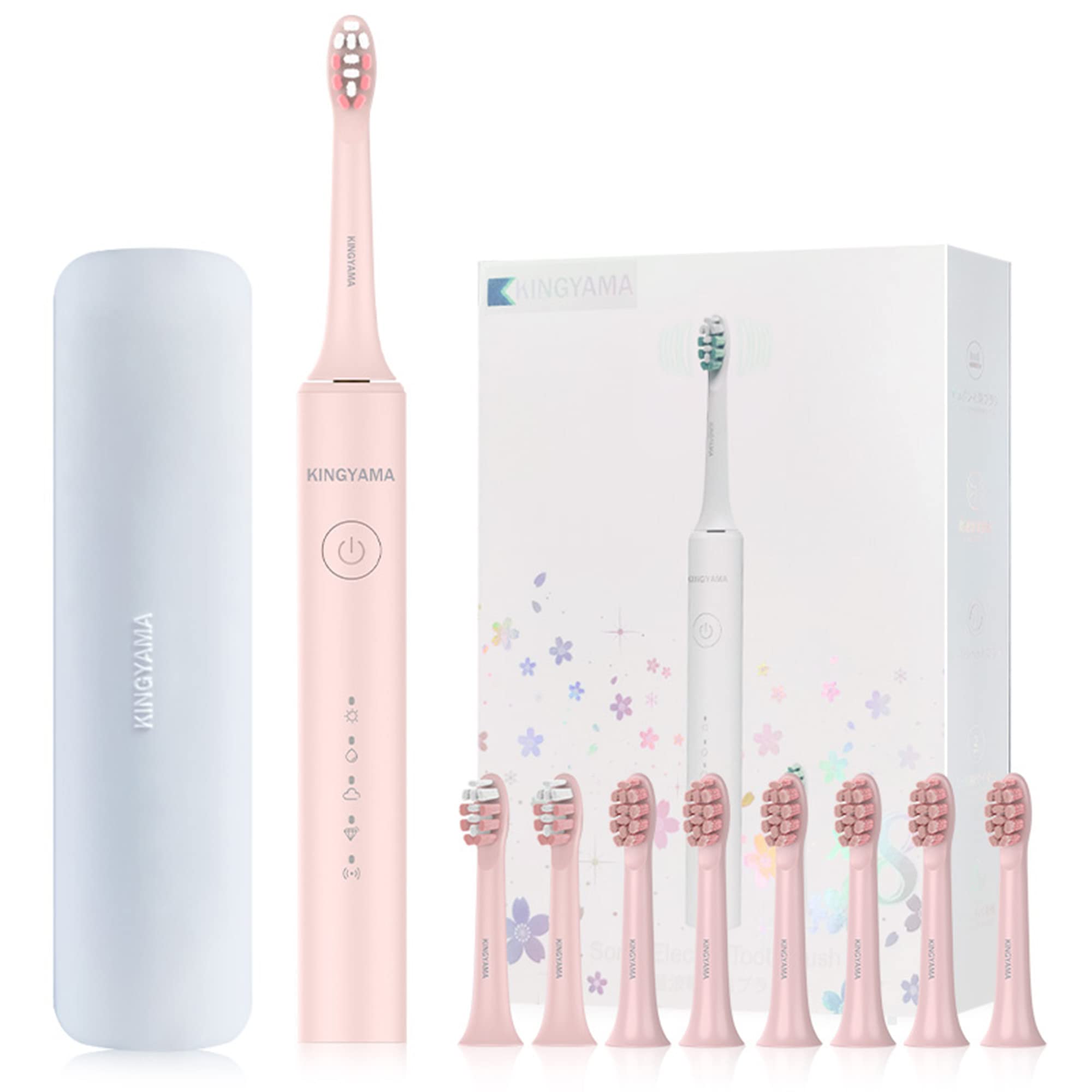 【2022最新】電動歯ブラシ 音波式 音波歯ブラシ 電動歯磨き IPX7防水 替えブラシ8本 柔らかめ6本 ふつう2本 ケース付き ソニック 5モード 2分間オートタイマー機能 充電式 セット買い 60日間使用 携帯便利 口内ケア デンタルケア K8 (ピンク) | Lumisfera