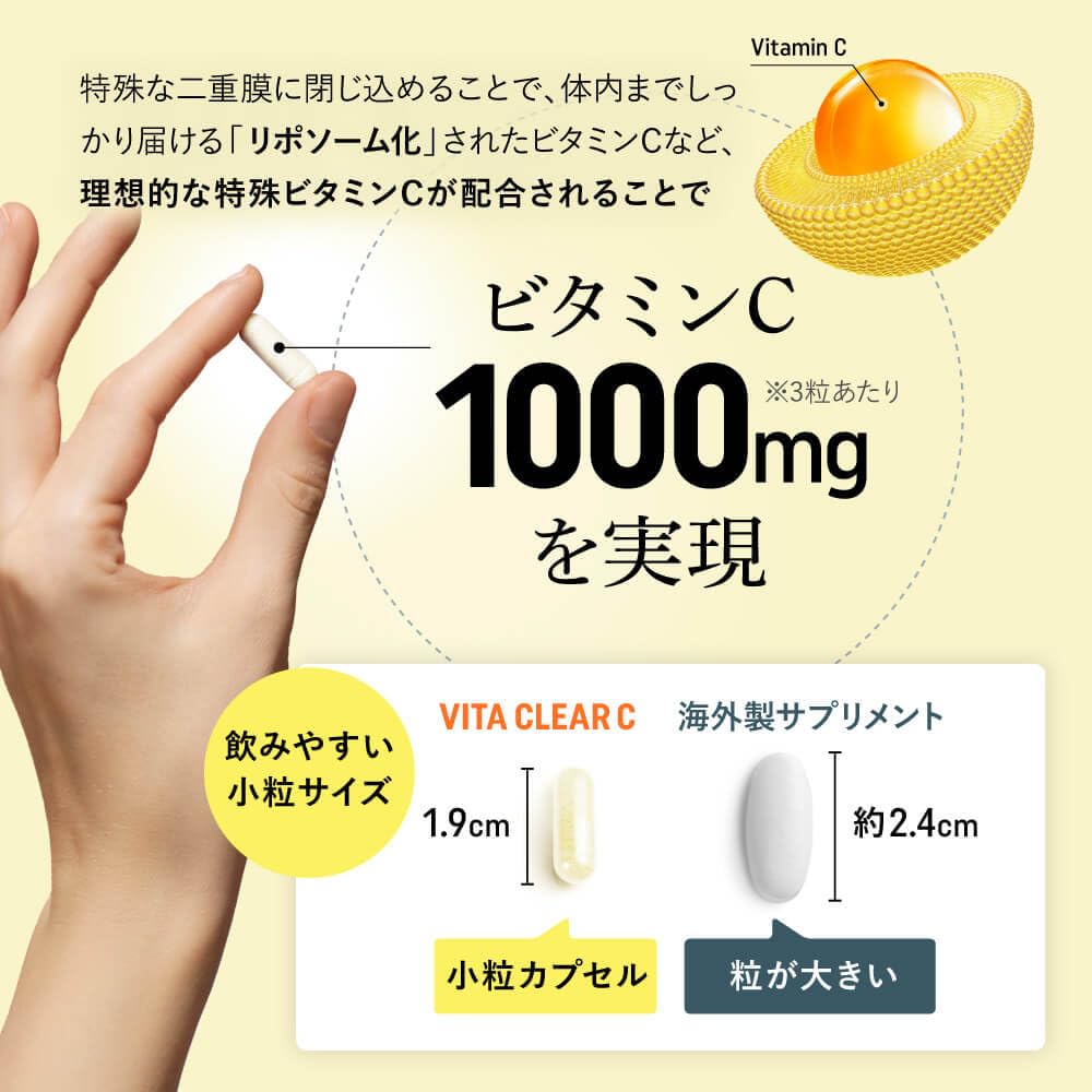 【3袋セット】ビタクリアC 高濃度 ビタミンC サプリメント 1,000mg配合 リポソームビタミンC 国内製造
