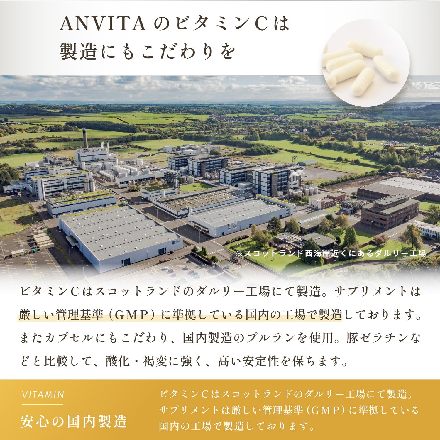 【安心の国内製造】安心、安全の国内GMP認定工場にてサプリメントを製造