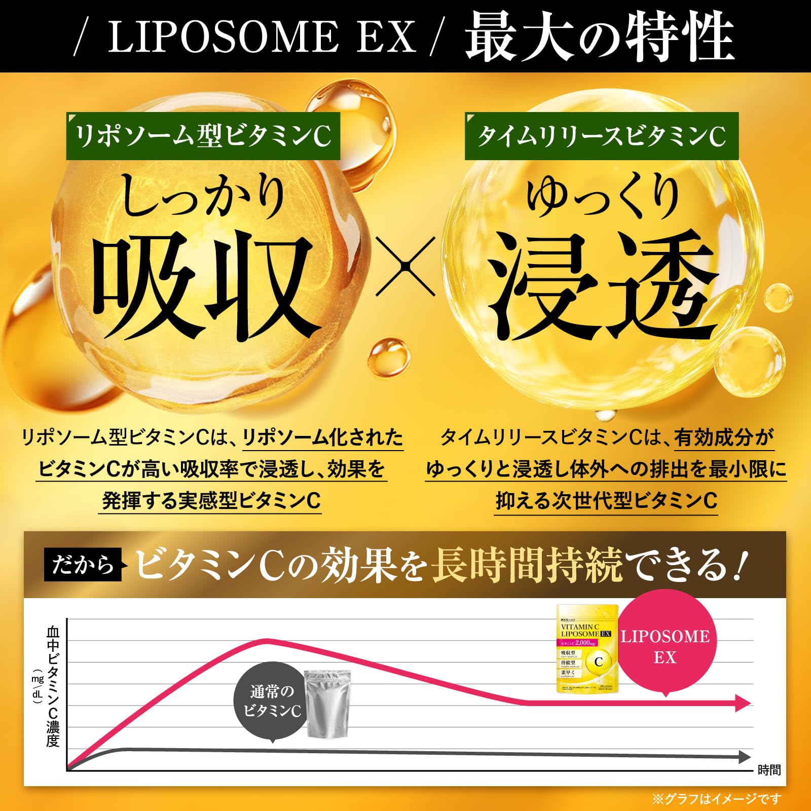 持続型 ビタミンC リポソーム サプリメント 2000mg配合 高吸収 高濃度 国内GMP認定工場 リポソームビタミンC タイムリリース ビタミンC誘導体 120粒 約30日分 新日本ヘルス