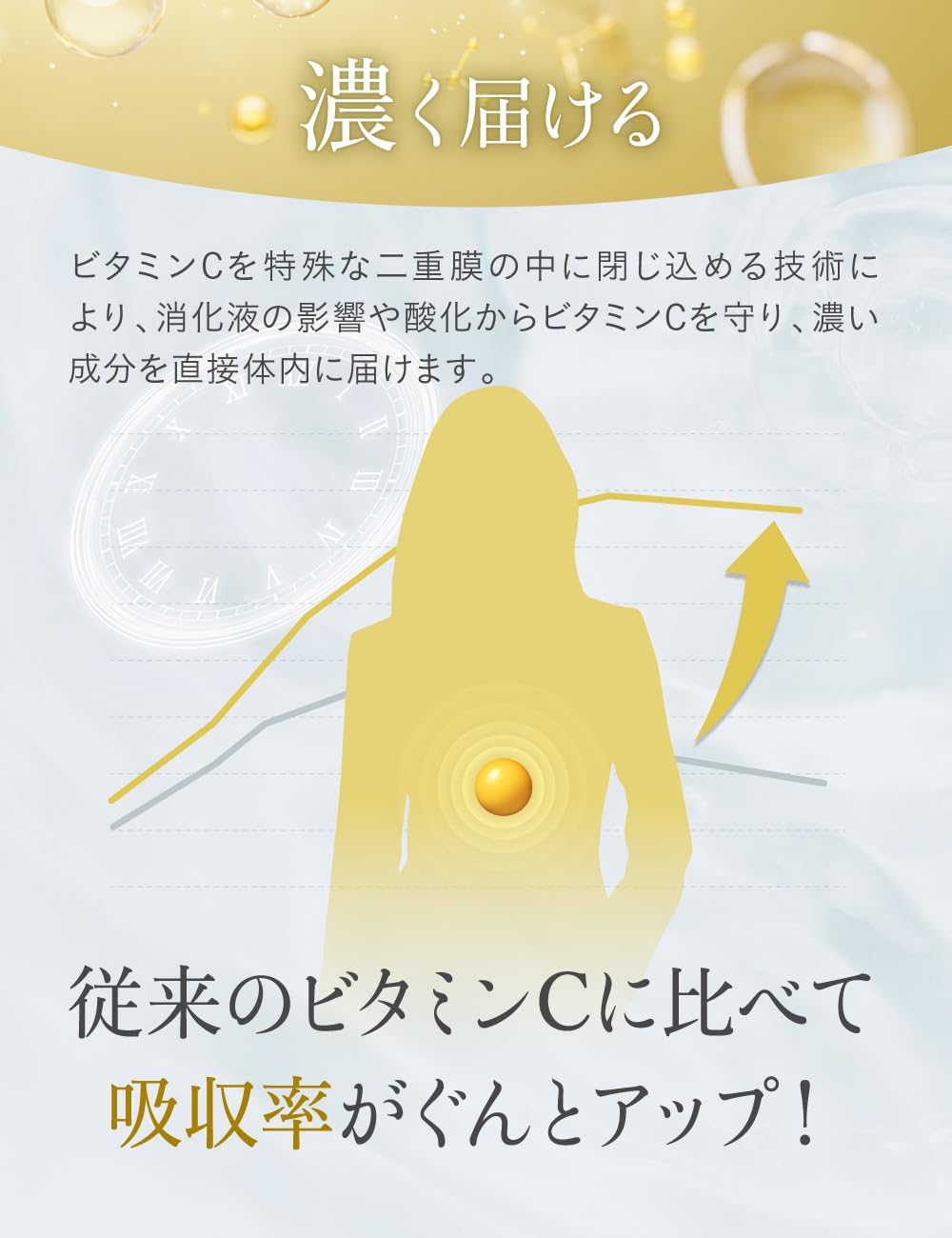 高い吸収率と持続力のリポソームビタミンCとビタミンC誘導体を配合