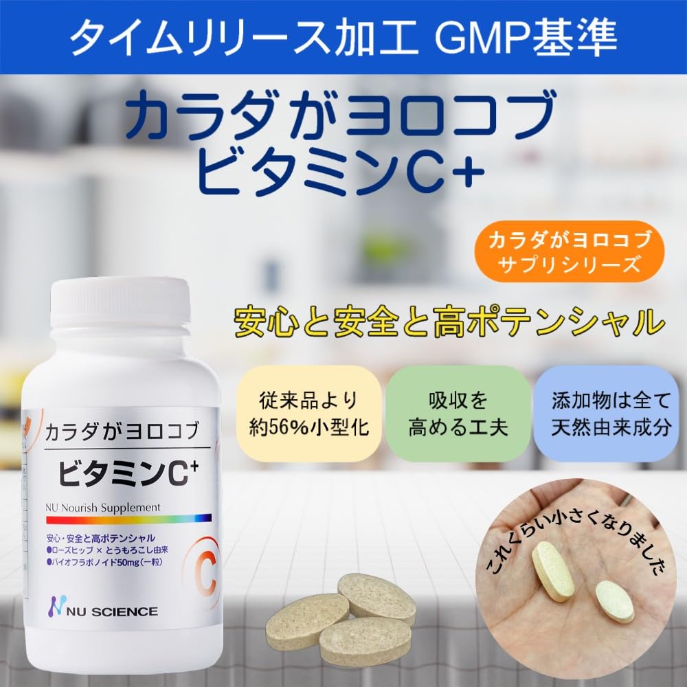 タイムリリース加工 タイムリリース加工とはサプリメントが体に入った後、徐々に溶けるようにする加工で、体内に溜める事ができない水溶性ビタミンを徐々に吸収することで体内濃度を高く維持する加工です。 バイオフラボノイド配合 ビタミンCはバイオフラボノイドを1粒あたり50mg含有しております。バイオフラボノイドはレモンの皮から取られた天然成分で、ビタミンCの体への吸収を高める成分です。