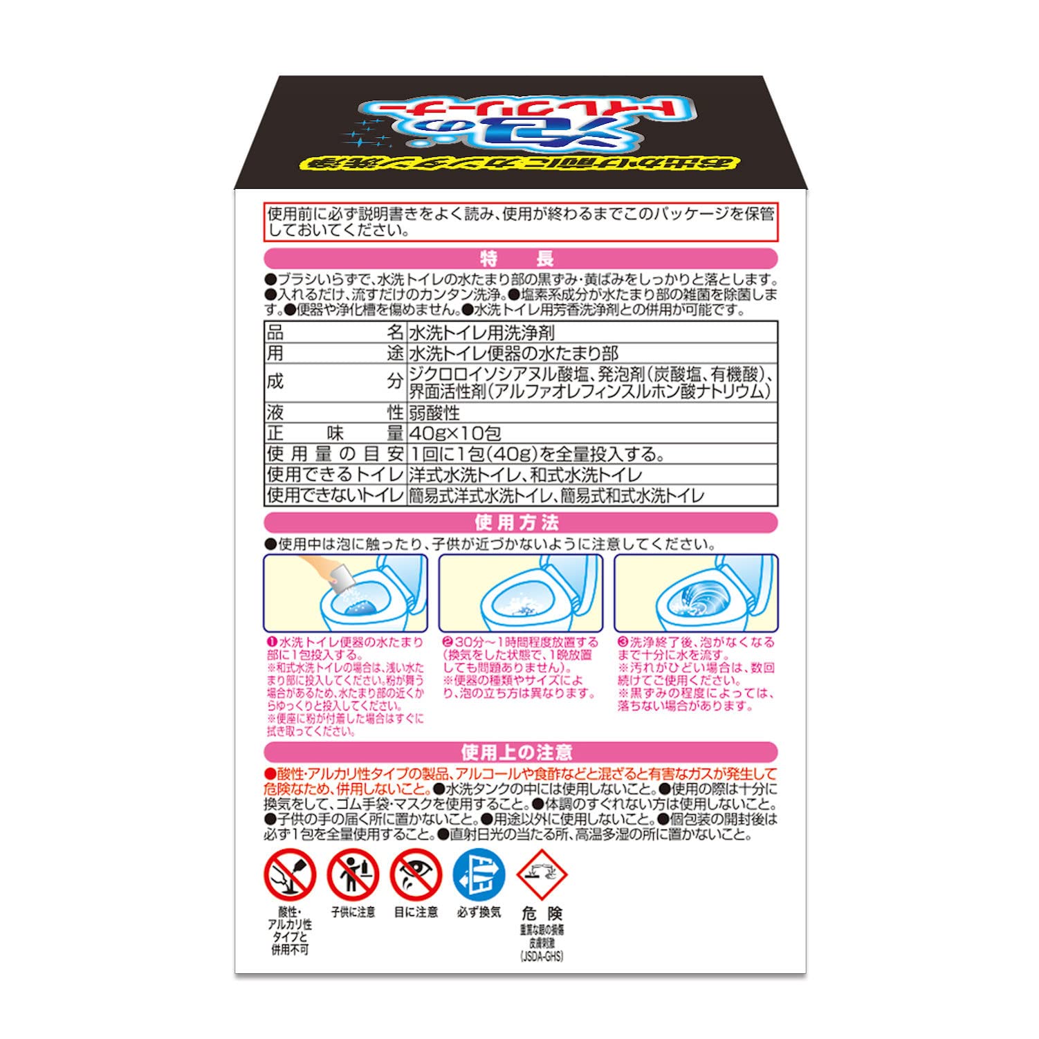 トイレボウル内(泡が届く範囲)の黒ずみ・黄ばみ・ピンク汚れをしっかり落とします。