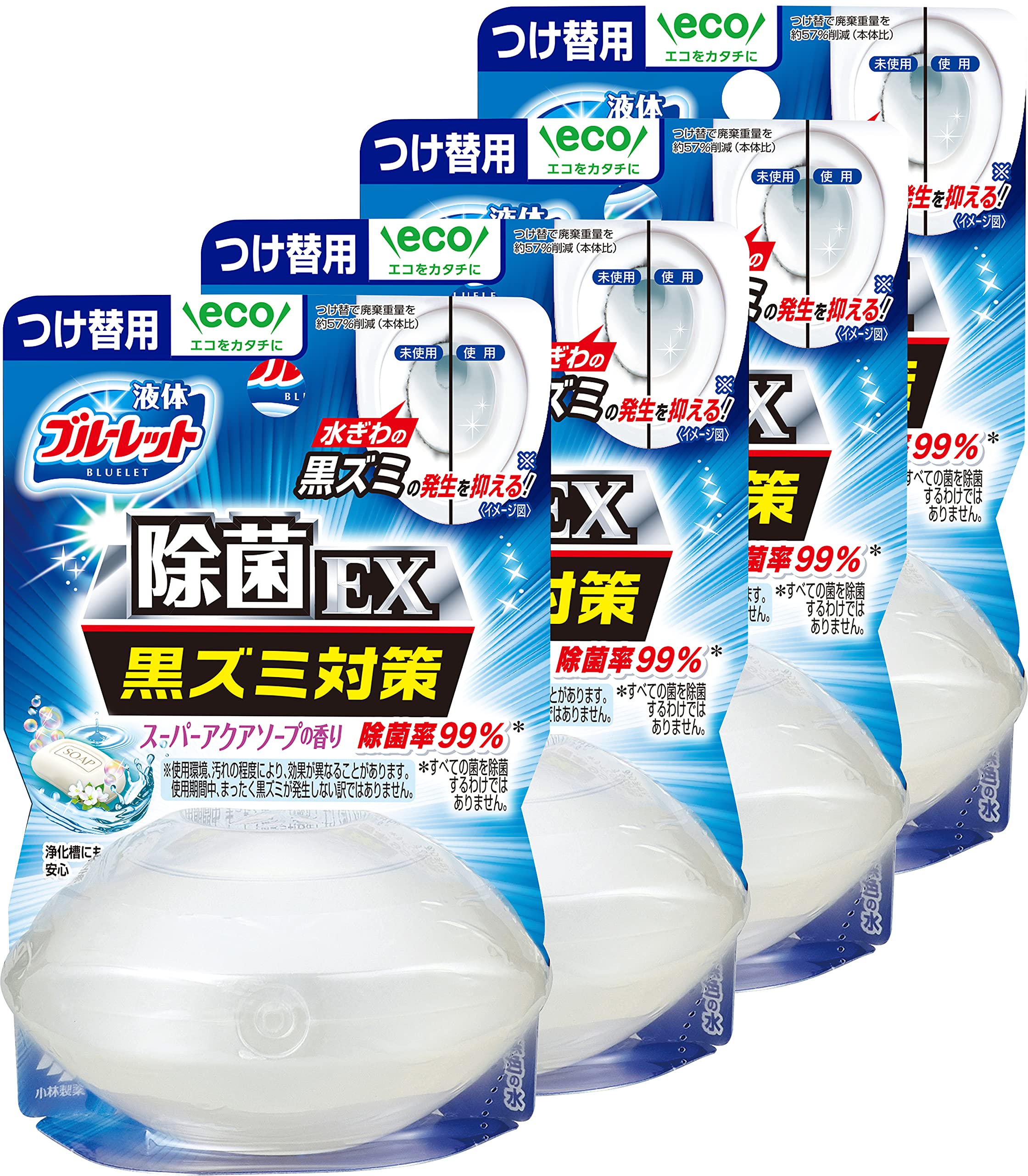 【まとめ買い】液体ブルーレットおくだけ除菌EX トイレタンク芳香洗浄剤 スーパーアクアソープの香り 詰め替え用 70ml×4個
