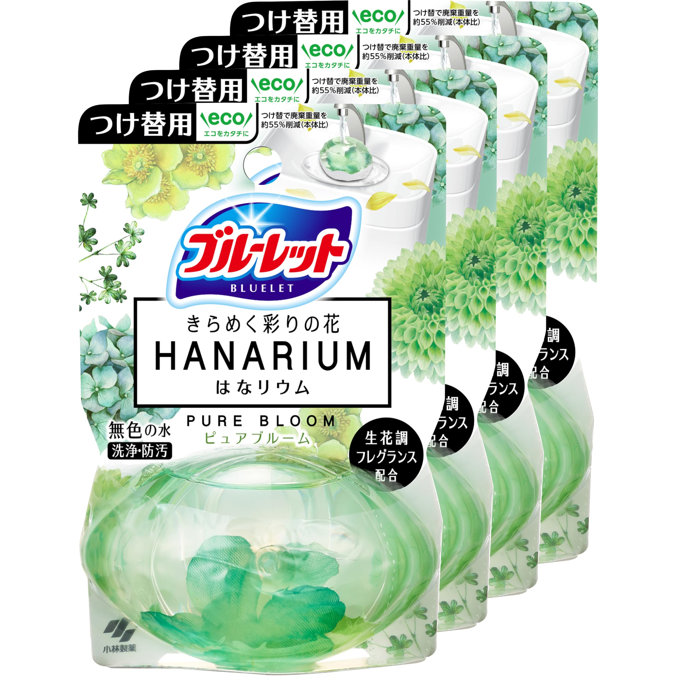 ブルーレット 【まとめ買い】液体 おくだけ きらめく彩りの花 はなリウム ピュアブルームの香り 詰め替え用 70ml×4個 トイレタンク芳香洗浄剤