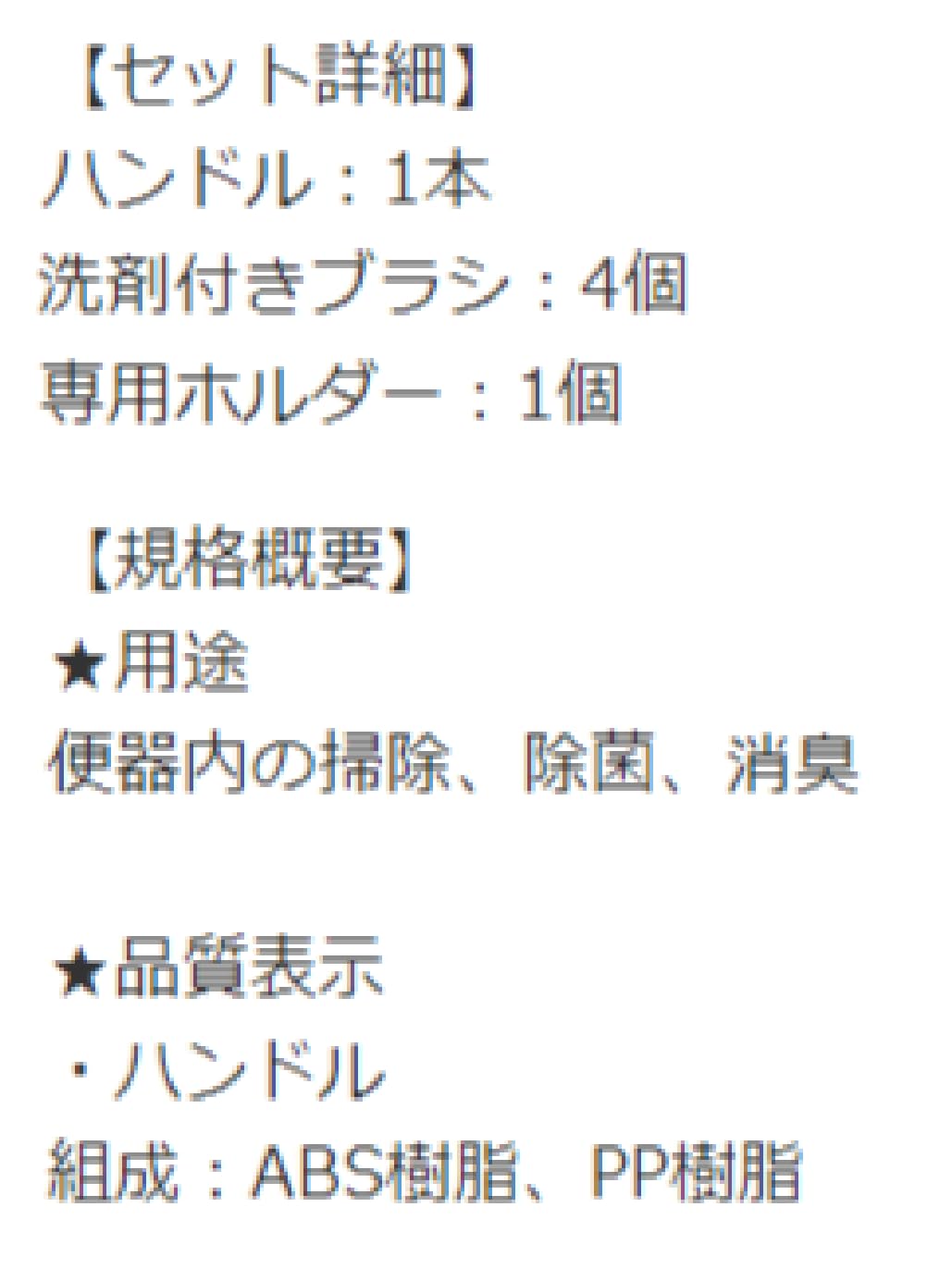 ?ハンドル1本。洗剤付きブラシ4コ入。専用ホルダー1コ。