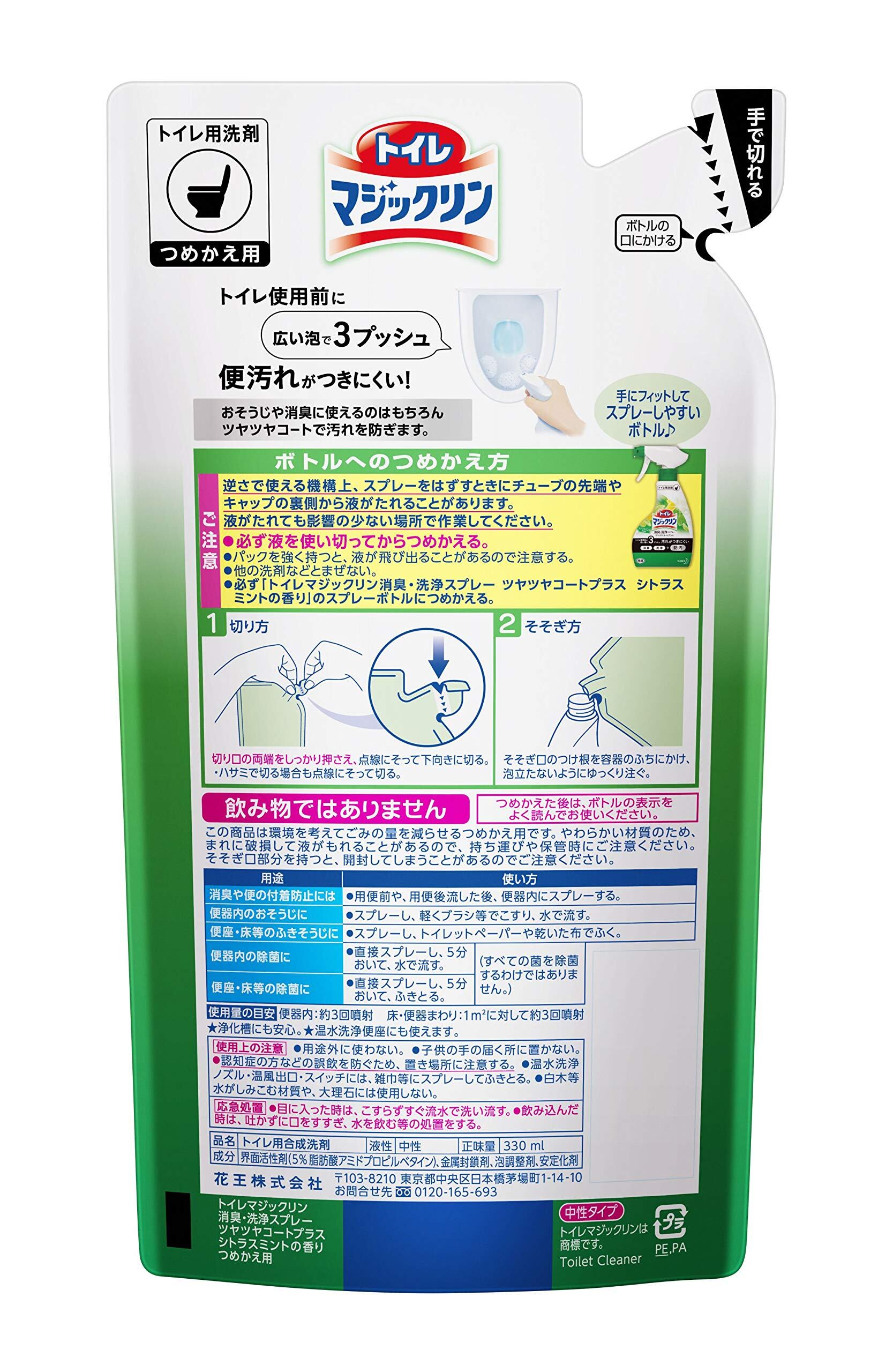 【まとめ買い】トイレマジックリン ツヤツヤコートプラス トイレ用洗剤 消臭・洗浄スプレー シトラスミントの香り 本体×1個+替×2個