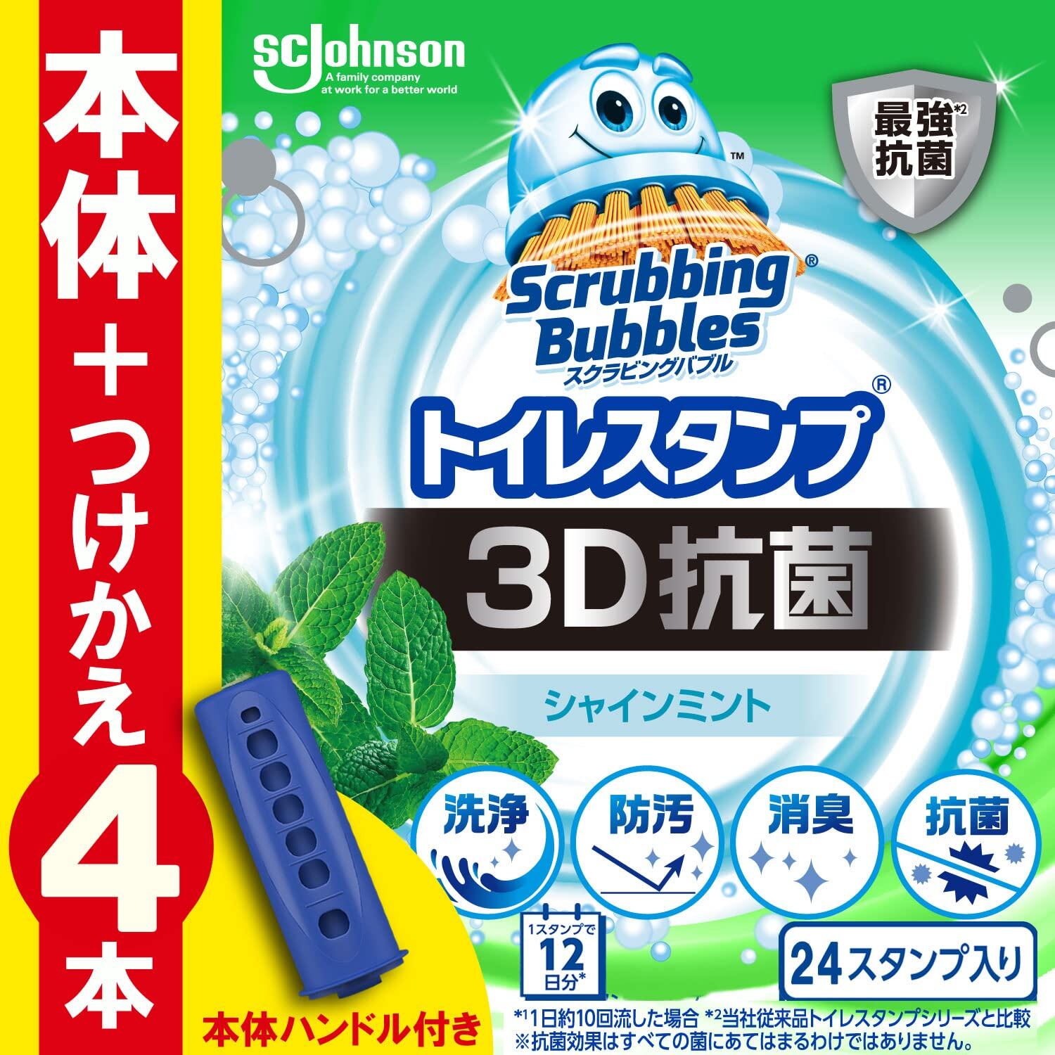スクラビングバブル トイレ掃除 トイレスタンプ 3D抗菌 シャインミントの香り 本体ハンドル+詰め替え用 4本(24スタンプ分) トイレ洗剤 トイレ 掃除 付け替え用 まとめ買い