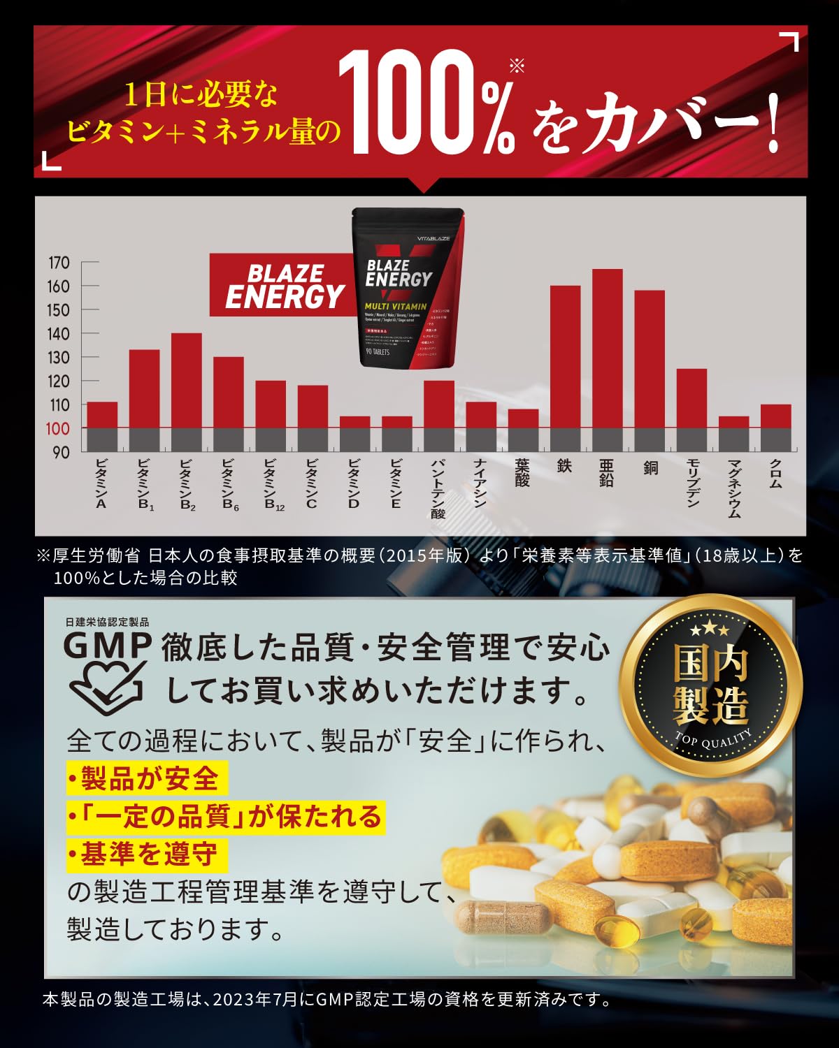 【特価商品】BLAZE ENERGY マルチビタミン & マルチミネラル サプリメント ビタミン 12種 ミネラル 11種 60日分 180粒 亜鉛 マカ 高麗人参 アルギニン トンカットアリ 牡蠣エキス VITA BLAZE ビタブレイズ ブレイズエナジー | Lumisfera