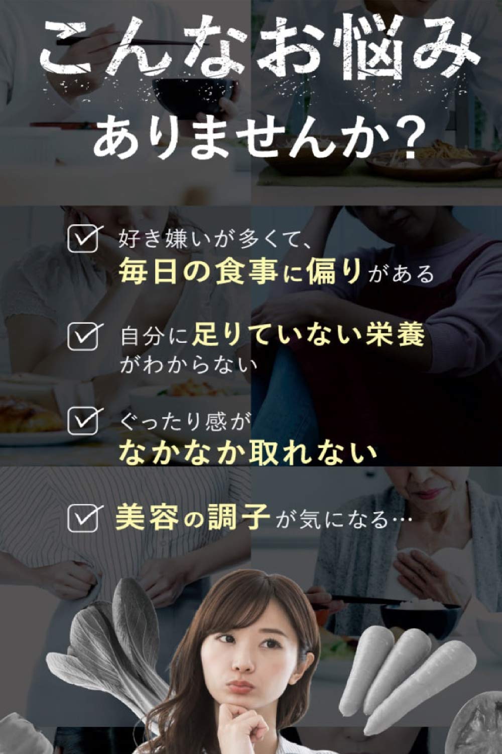 野菜不足・栄養バランス 気になっていても食事だけで栄養不足を補うのは難しい。そんな方にオススメしたい