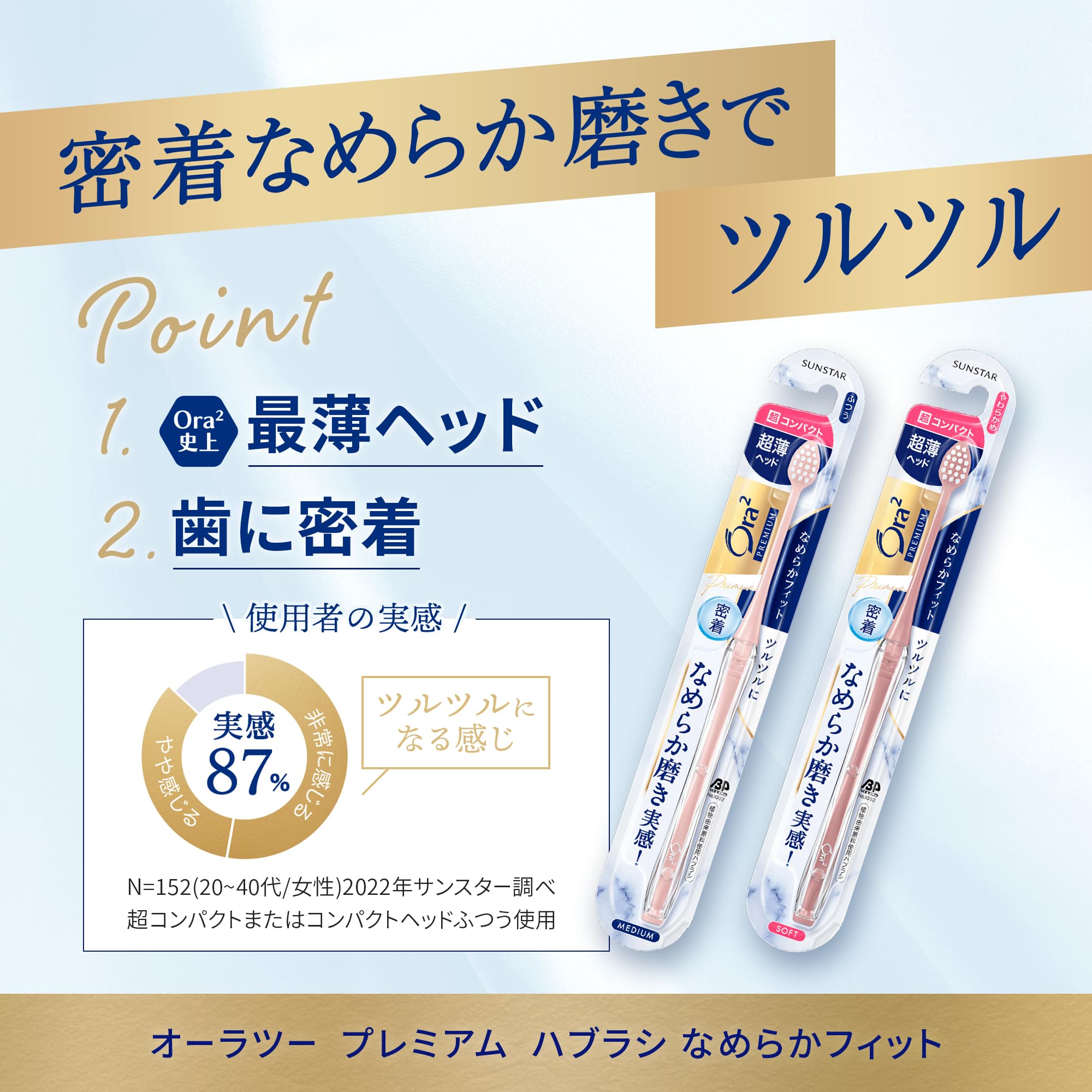 Ora2(オーラツー) プレミアム ハブラシ なめらかフィット [超コンパクト ふつう] 3本パック まとめ買い ※色は選べません