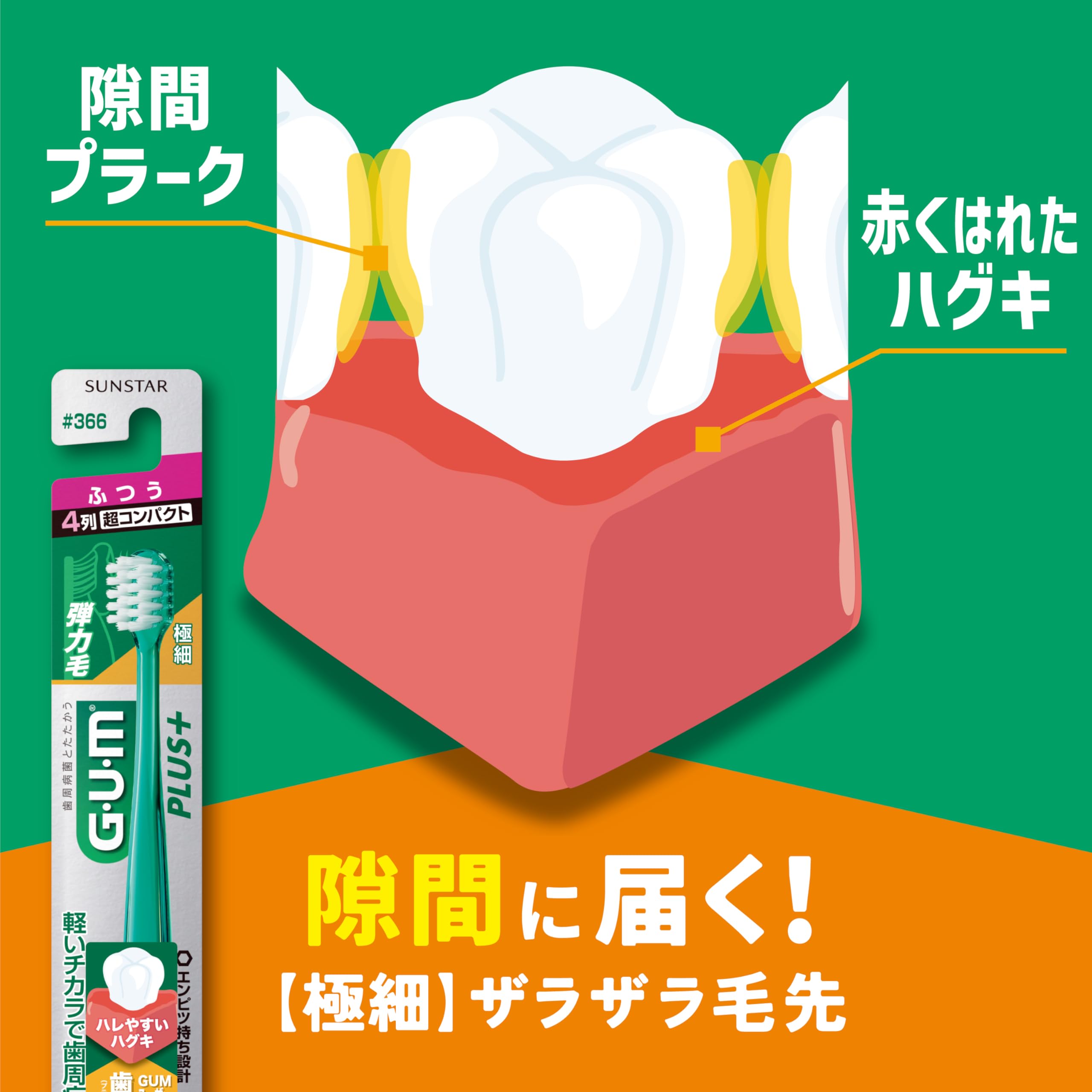 先細毛(毛先のザラザラ処理)で歯とハグキの境目の歯周プラーク(歯垢)をからめ取る
