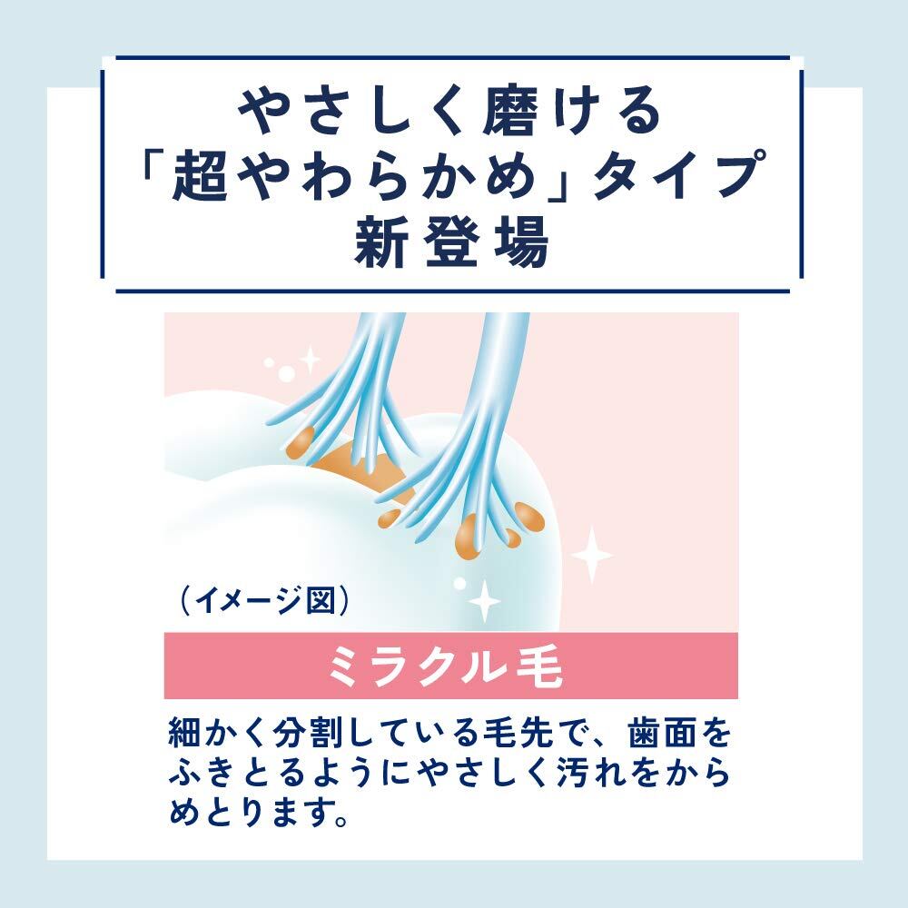 1本1本の毛先が細かく分割しているためやわらかく、歯やハグキにやさしい。