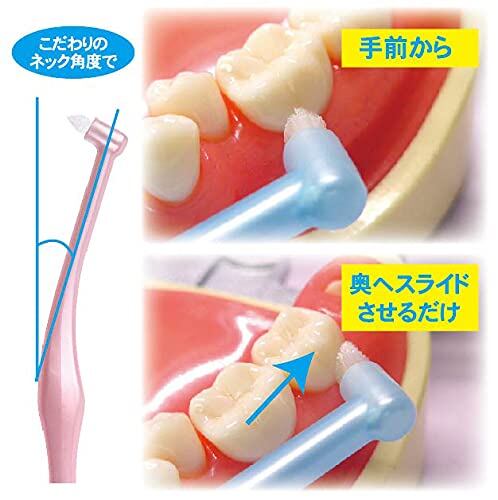 歯間部分、矯正部分の清掃に優れています。奥歯までしっかり届きます。お子様の細部の仕上げ磨きにも使っていただけます。