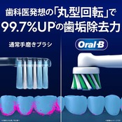 Oral B No.1 世界の歯科医師推奨 * 最大99.7% より優れた歯垢除去力 * で、健康的な歯ぐきへ 電動歯ブラシ、歯磨き 歯を包み込んで歯垢をこすり取る丸型回転 + 歯垢を叩き落す上下振動