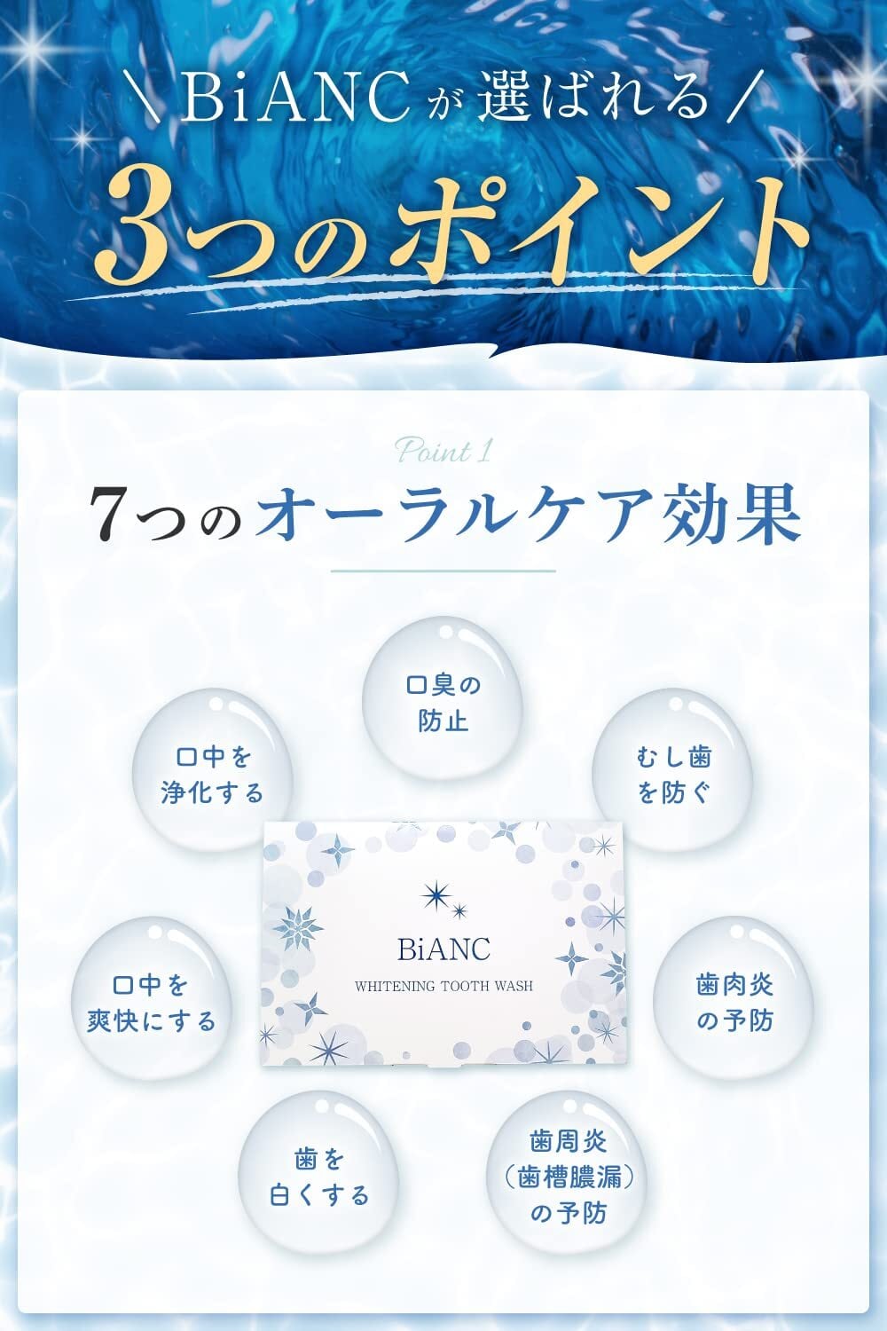 BIANCマウスウォッシュはホワイトニング・口臭予防・歯周病予防・歯肉炎予防ができる医薬部外品の口臭清涼剤です。