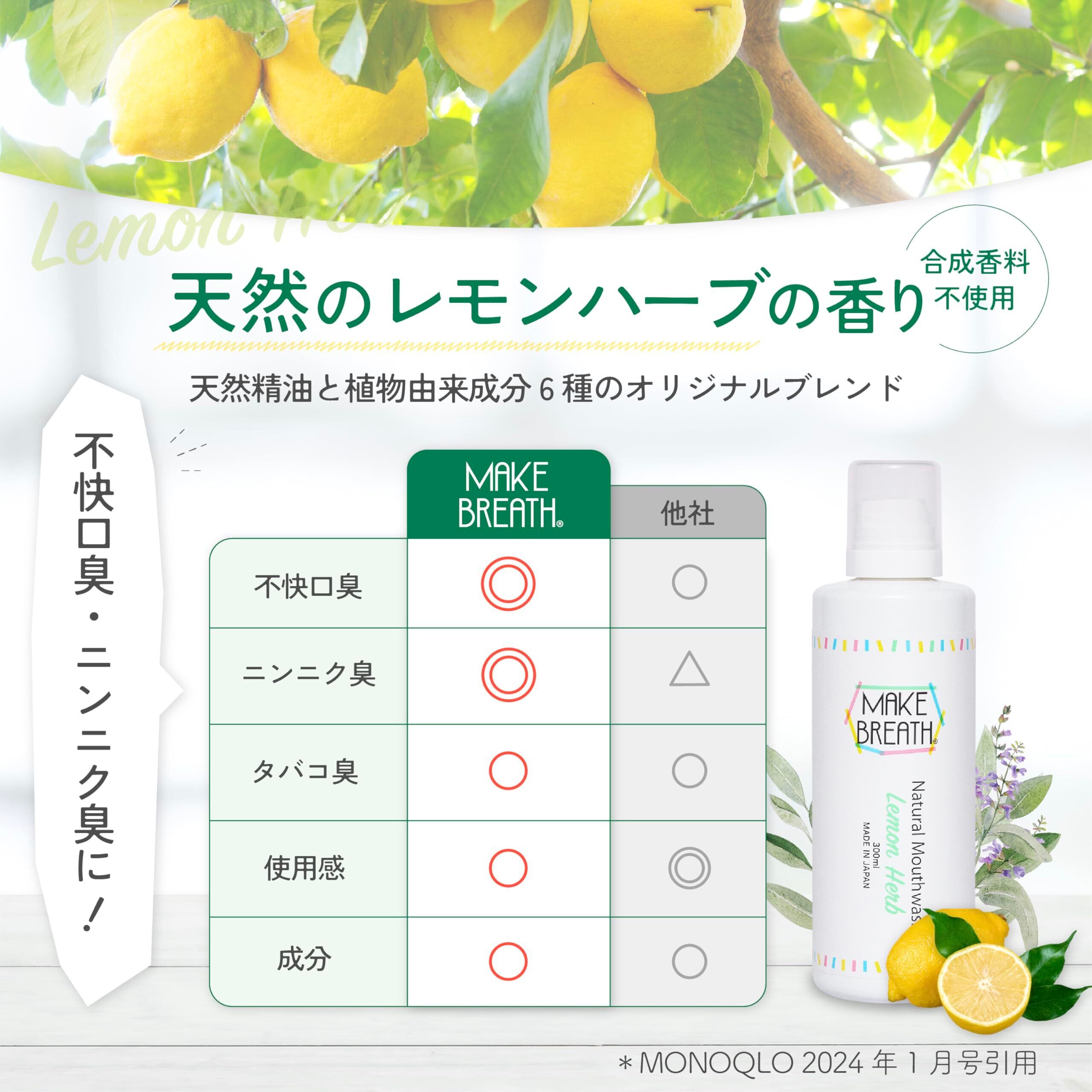 メイクブレス マウスウォッシュ 子供 低刺激 自然派 98%天然由来成分 ブレスケア 洗口液 口臭ケア 口臭 口臭対策 レモンハーブの香り 無添加 300ml