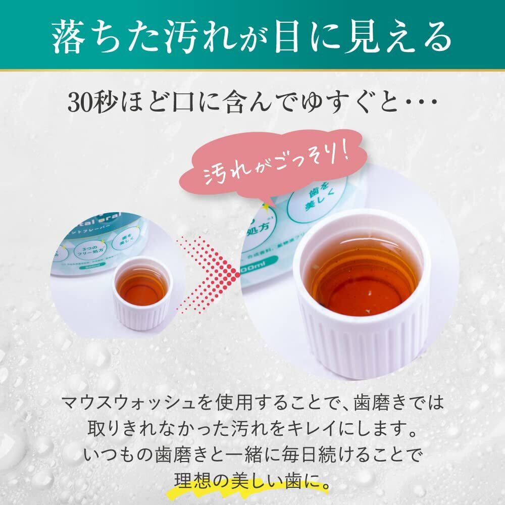 【使用方法】 適量を(10~20mlほど)口に含み、歯・舌・歯茎に行き渡るようにをよくゆすいでください。 歯磨きと併用することで、虫歯予防*・歯石の除去*・歯石の沈着を防ぐ*ことができます。 *ブラッシング効果による